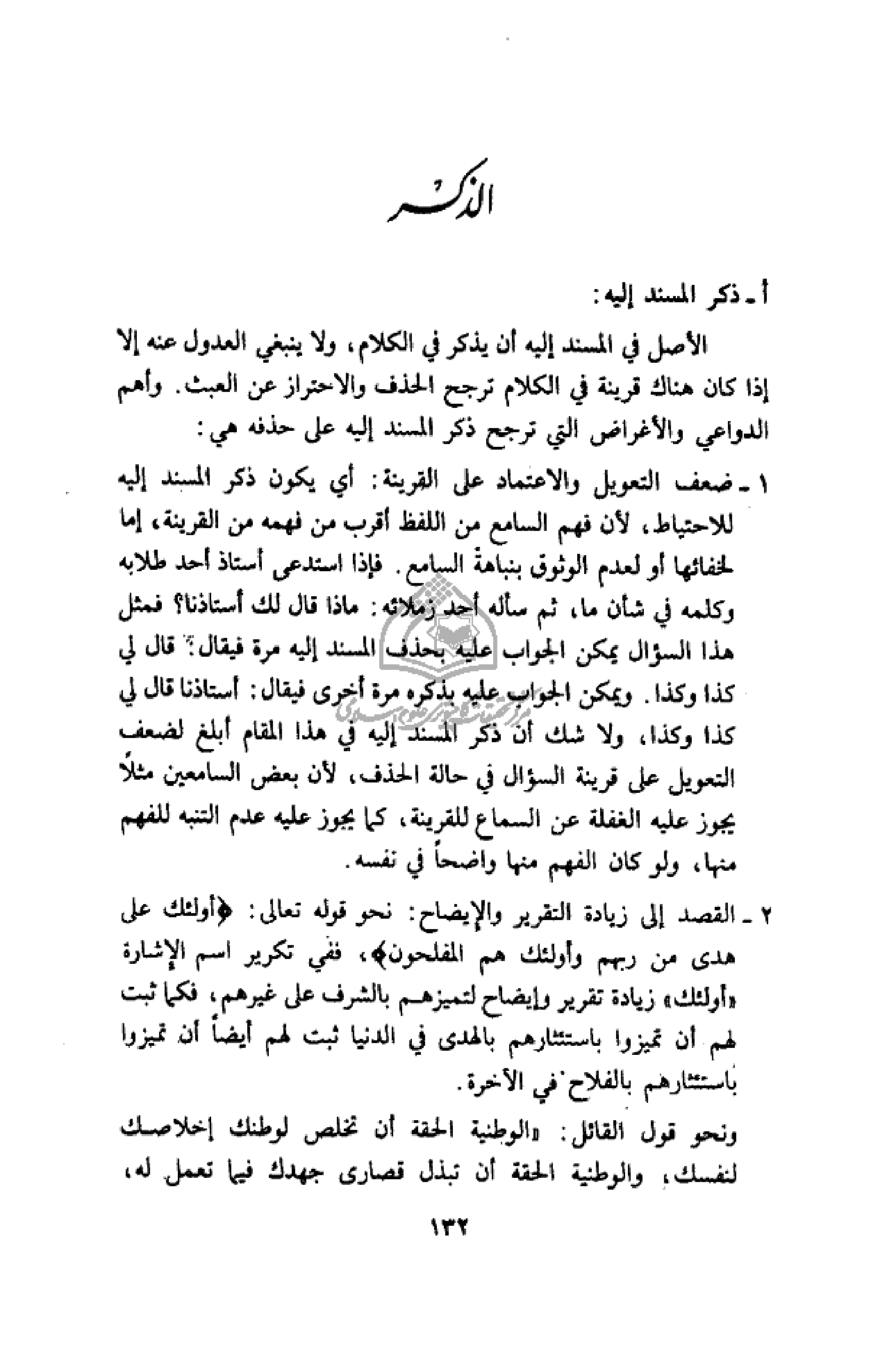أ- ذكر المسند إليه: