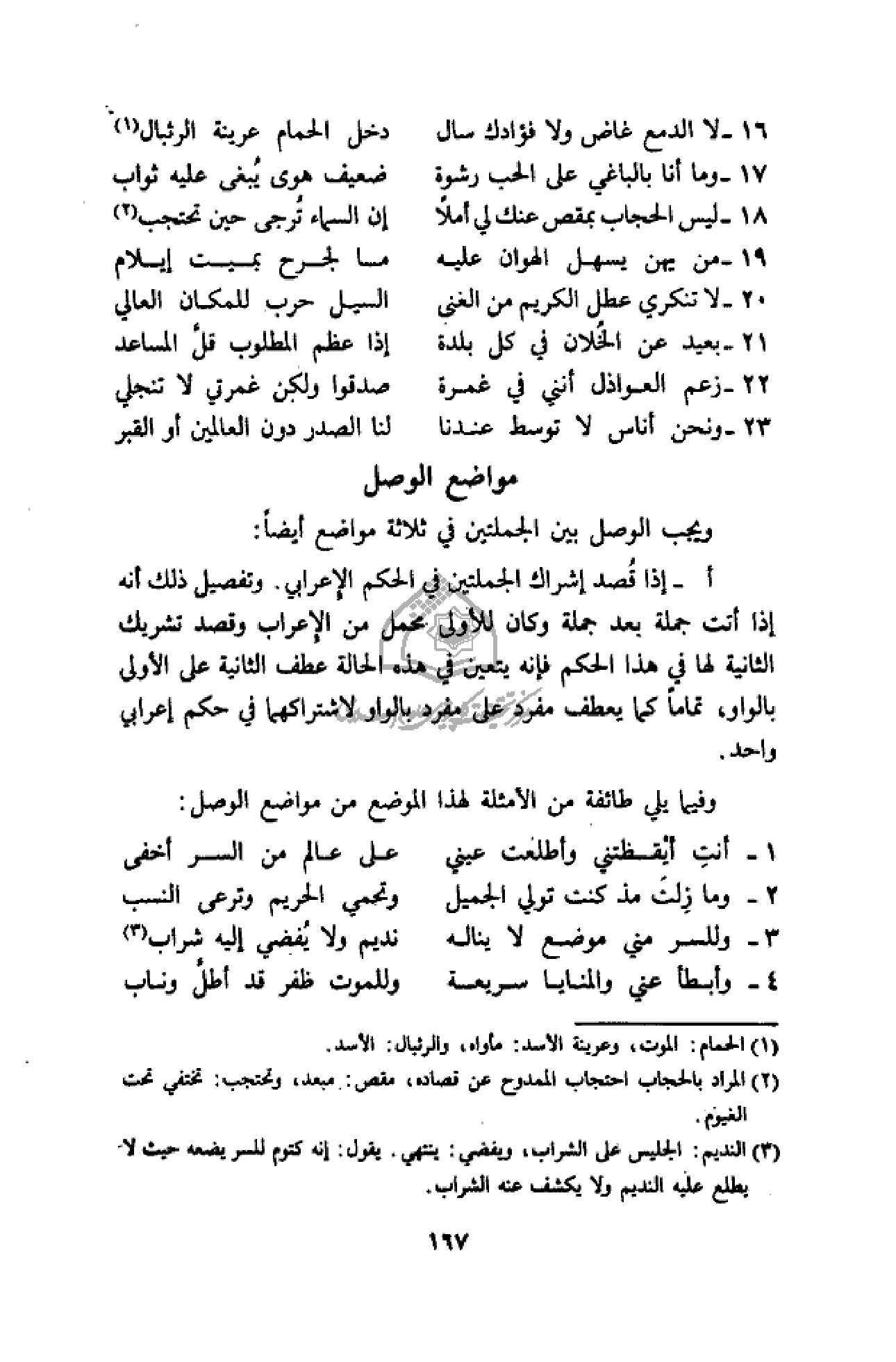 وفيما يلي طائفة من الأمثلة لهذا الموضع من مواضع الوصل:
