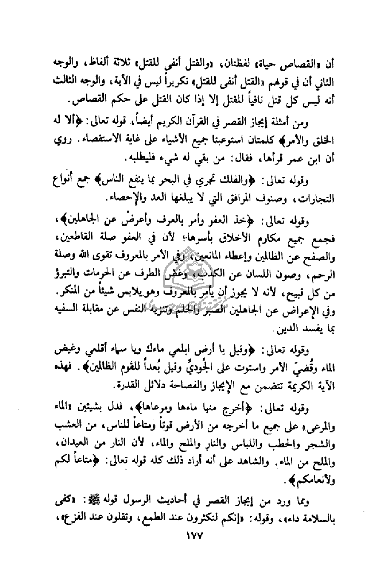 أن «القصاص حياة» لفظتان، «والقتل أنفى للقتل» ثلاثة ألفاظ، والوجه الثاني أن في قولهم «القتل أنفى للقتل» تكريرا ليس في الآية، والوجه الثالث أنه ليس كل قتل نافيا للقتل إلا إذا كان القتل على حكم القصاص.