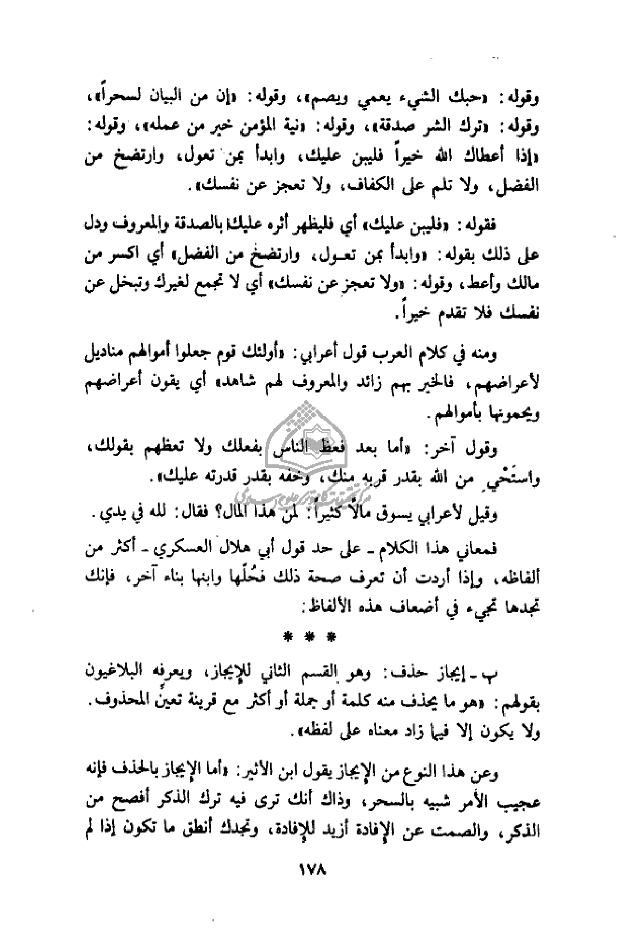 وعن هذا النوع من الإيجاز يقول ابن الأثير: «أما الإيجاز بالحذف فإنه عجيب الأمر شبيه بالسحر، وذاك أنك ترى فيه ترك الذكر أفصح من الذكر، والصمت عن الإفادة أزيد للإفادة، وتجدك أنطق ما تكون إذا لم