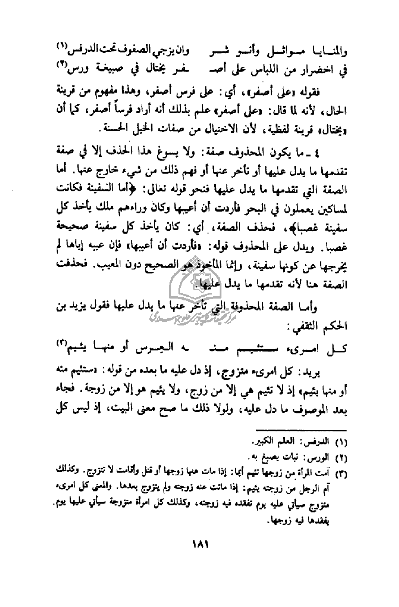 وأما الصفة المحذوفة التي تأخر عنها ما يدل عليها فقول يزيد بن الحكم الثقفي: