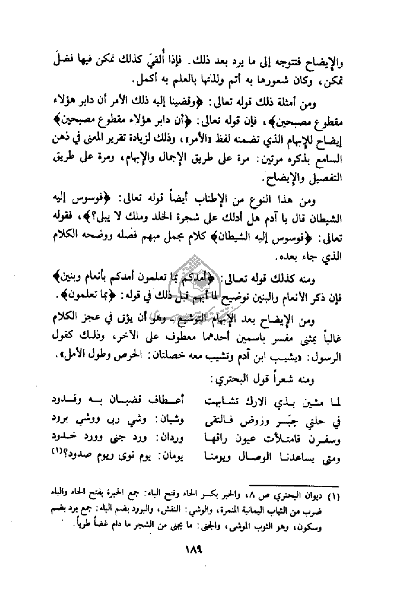 (¬1) ديوان البحتري ص 8، والحبر بكسر الحاء وفتح الباء: جمع الحبرة بفتح الحاء والباء ضرب من الثياب اليمانية المنمرة، والوشي: النقش، والبرود بضم الباء: جمع برد بضم وسكون، وهو الثوب الموشى، والجنى: ما يجنى من الشجر ما دام غضا طريا.