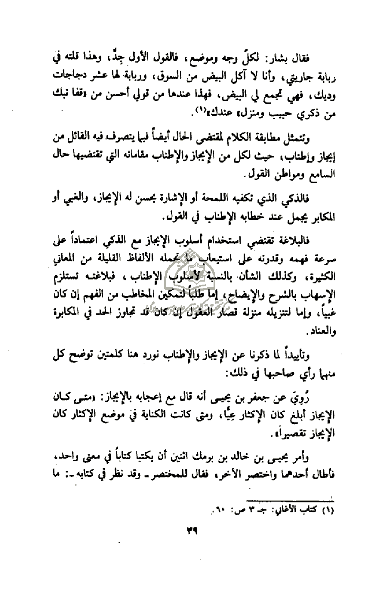 روي عن جعفر بن يحيى أنه قال مع إعجابه بالإيجاز: «متى كان الإيجاز أبلغ كان الإكثار عيّا، ومتى كانت الكناية في موضع الإكثار كان الإيجاز تقصيرا».