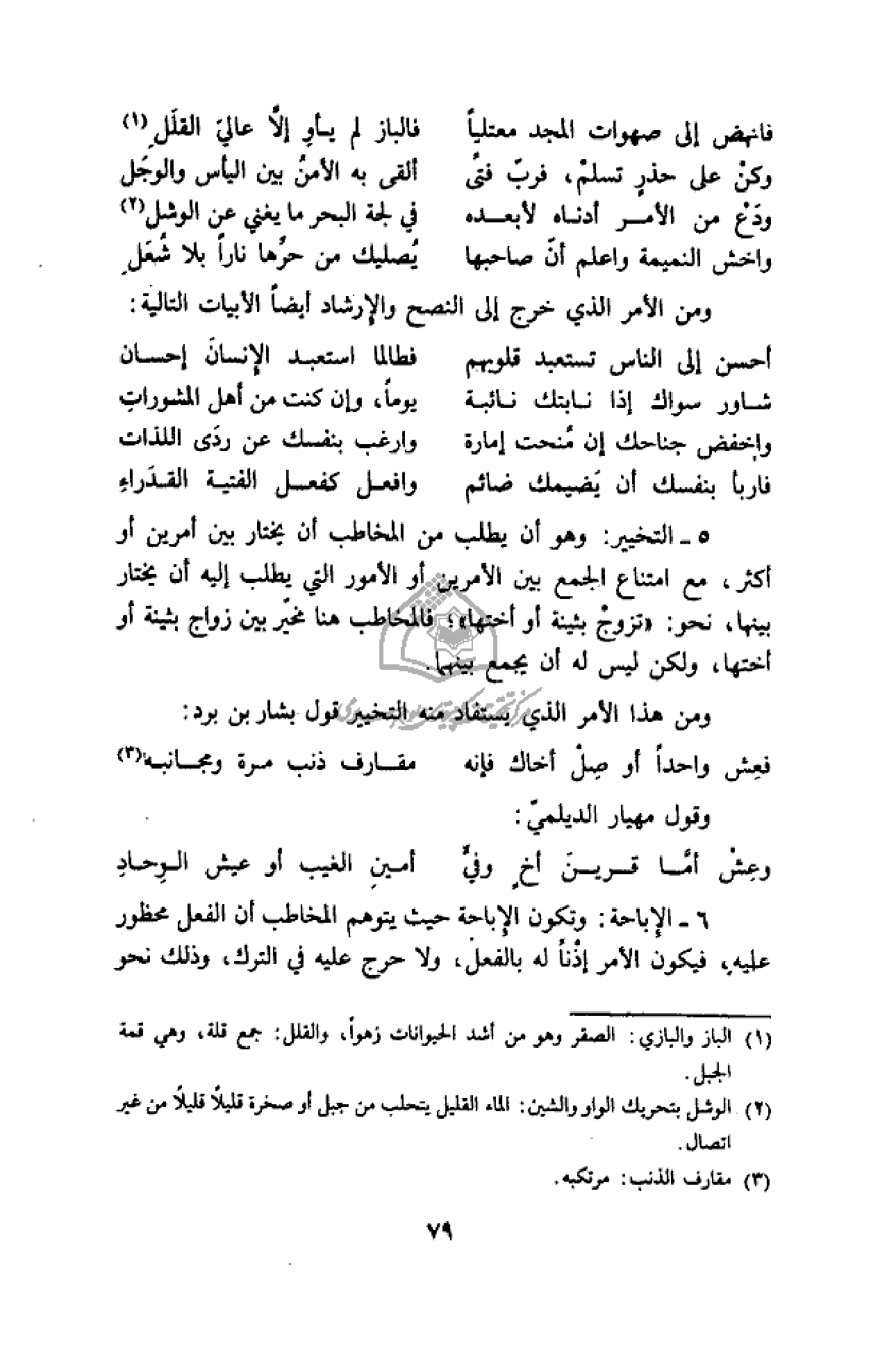 ومن هذا الأمر الذي يستفاد منه التخيير قول بشار بن برد: