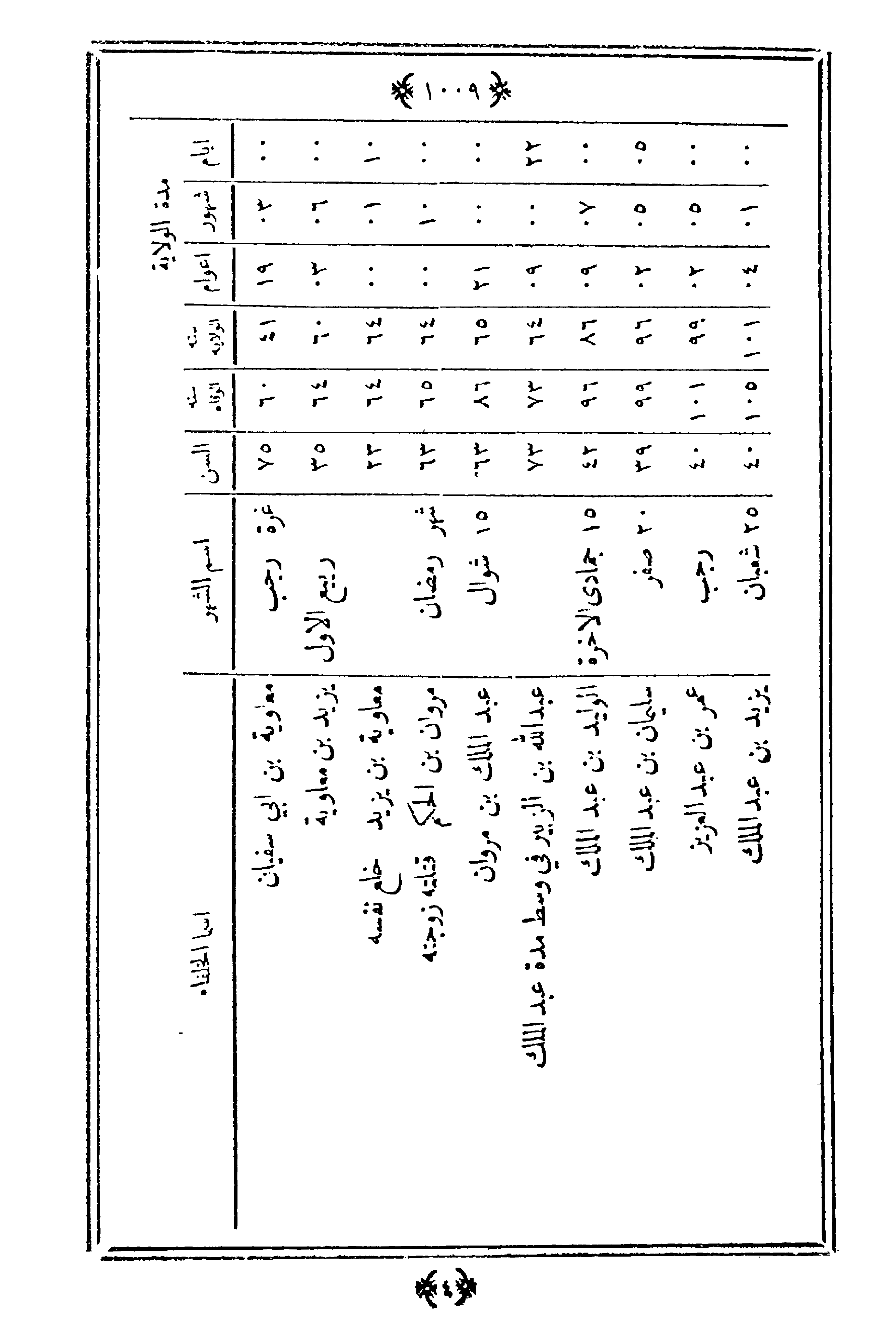 أيامشهورأعوامسنة الولايةسنة الوفاةالسناسم الشهرأسماء الخلفاء