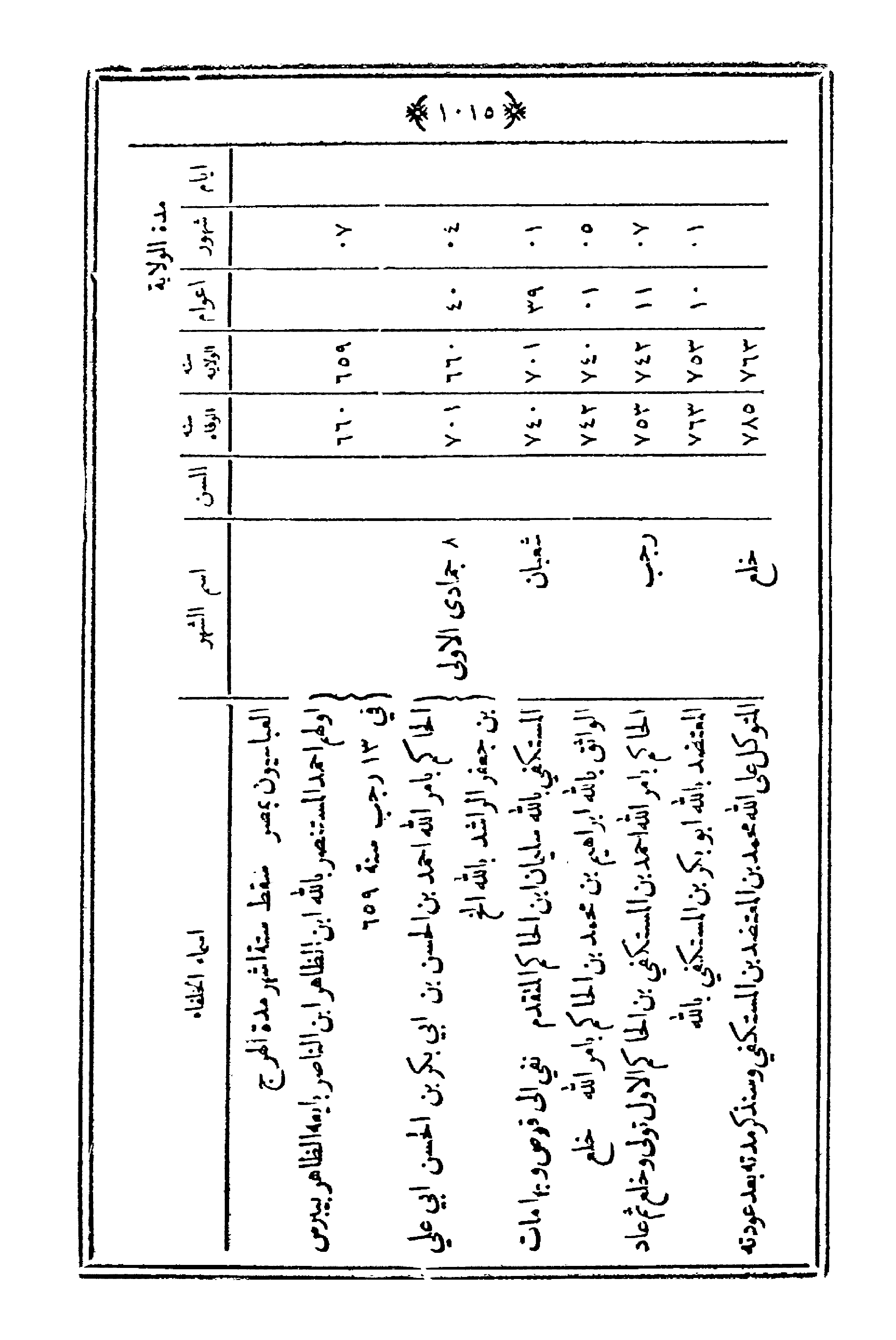 07659 660 أولهم أحمد المستنصر بالله ابن الظاهر ابن الناصر بايعه الظاهر بيبرس في 13 رجب سنة 659