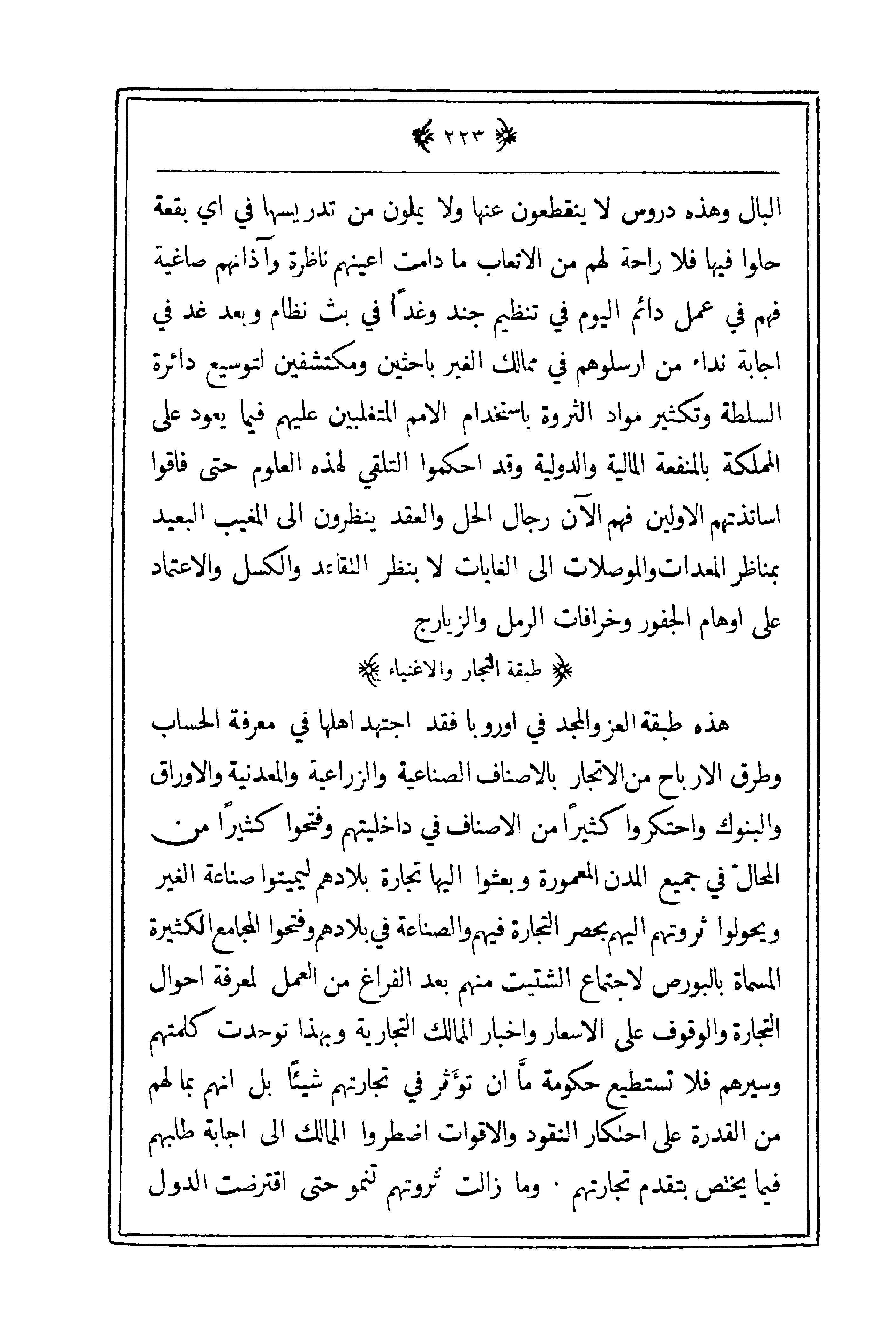 هذه طبقة العز والمجد في أوروبا فقد اجتهد أهلها في معرفة الحساب وطرق الأرباح من الإتجار بالأصناف الصناعية والزراعية والمعدنية والأوراق والبنوك واحتكروا كثيراً من