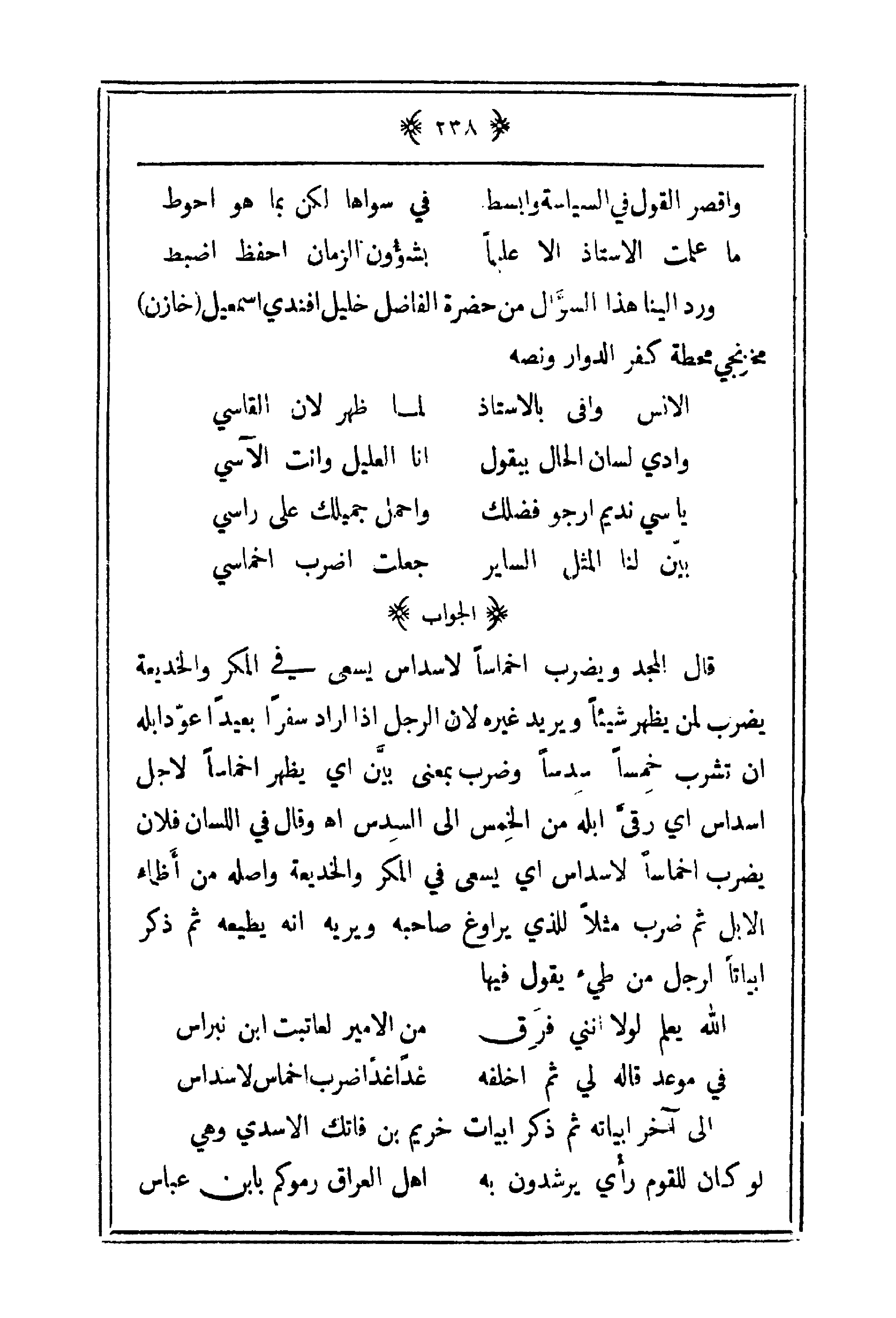 بين لنا المثل الساير ... جعلت اضرب اخماسي