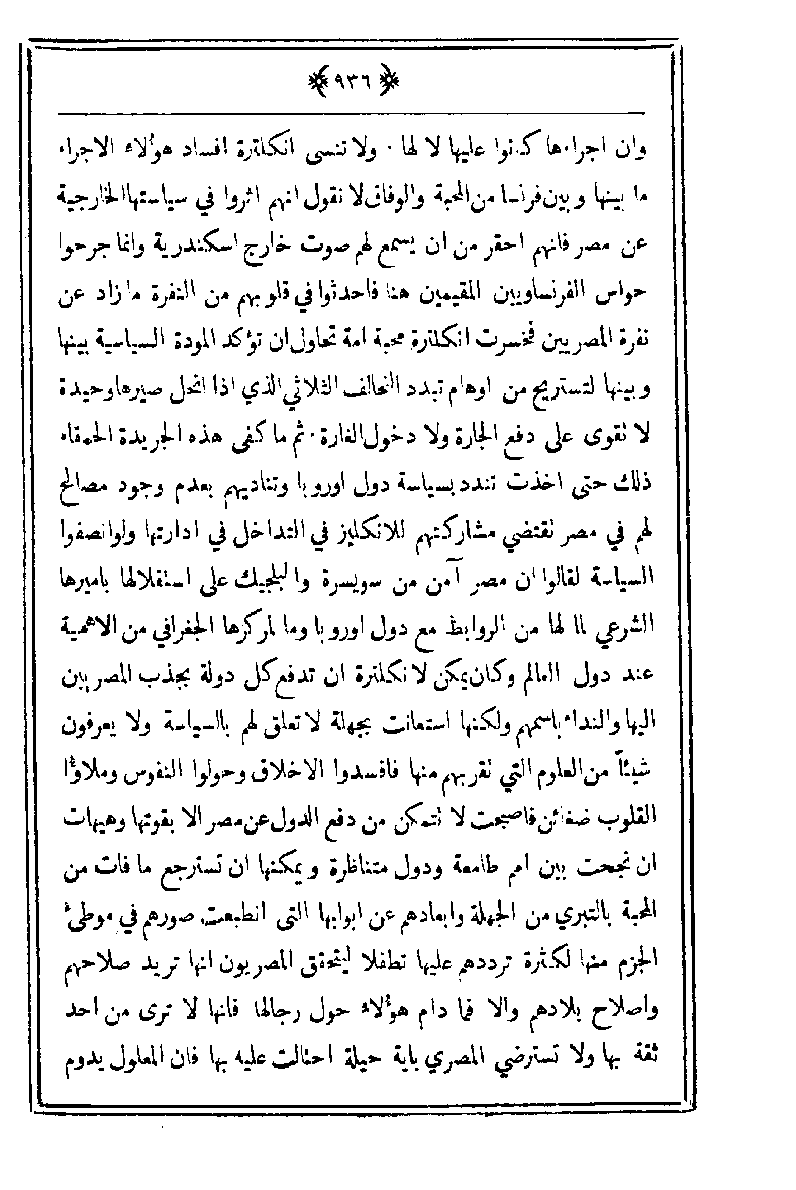 وأن إجراءها كانوا عليها لا لهاز ولا تنسى انكلترة إفساد هؤُلاء الإجراء ما بينها وبين فرسنا من المحبة والوفاق لا نقول أنهم أثروا في سياستها الخارجية عن مصر فإنهم أحقر من أن