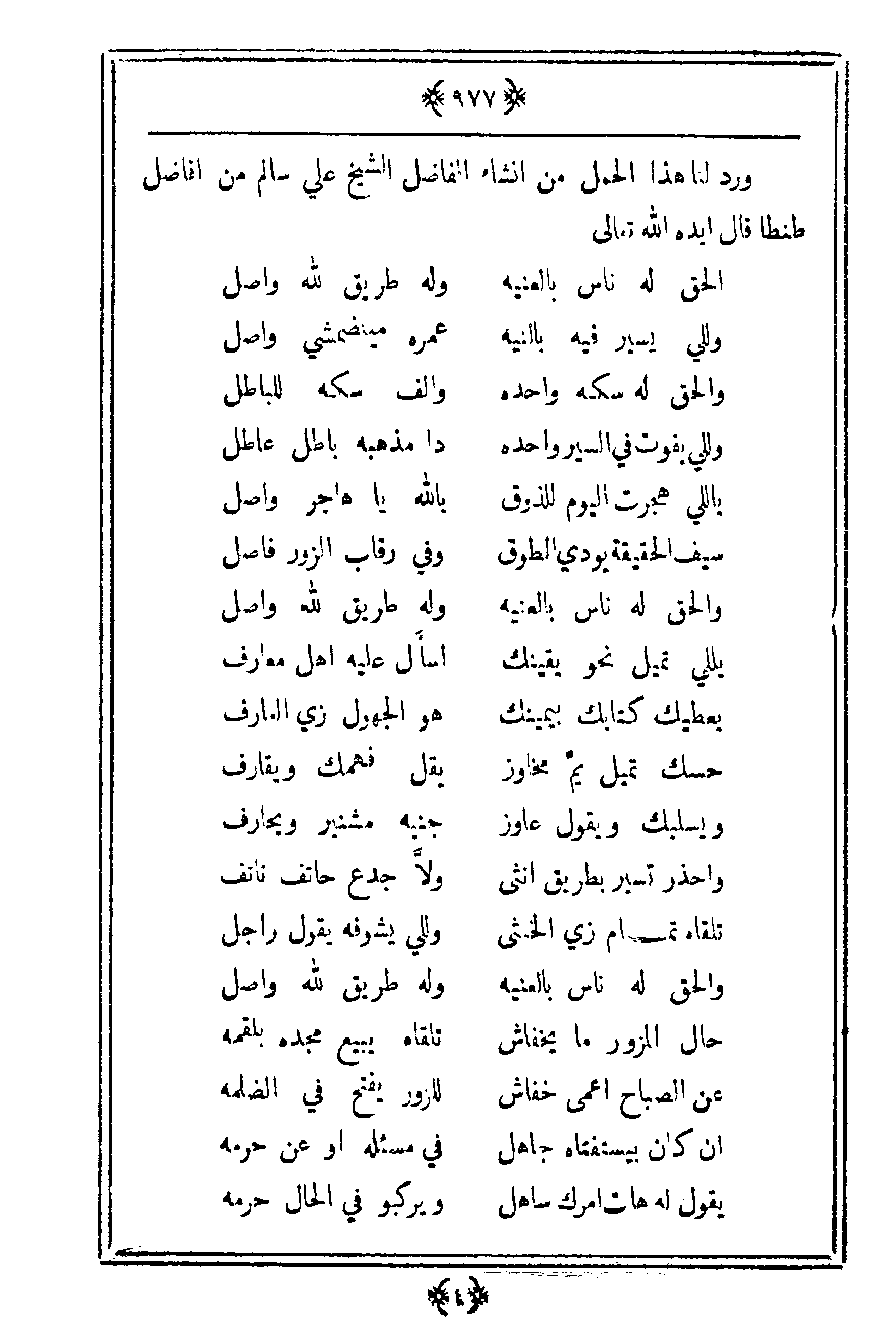 ورد لنا هذا الحمل من إنشاء الفاضل الشيخ علي سالم من أفاضل طنطا قال أيده الله تعالى.