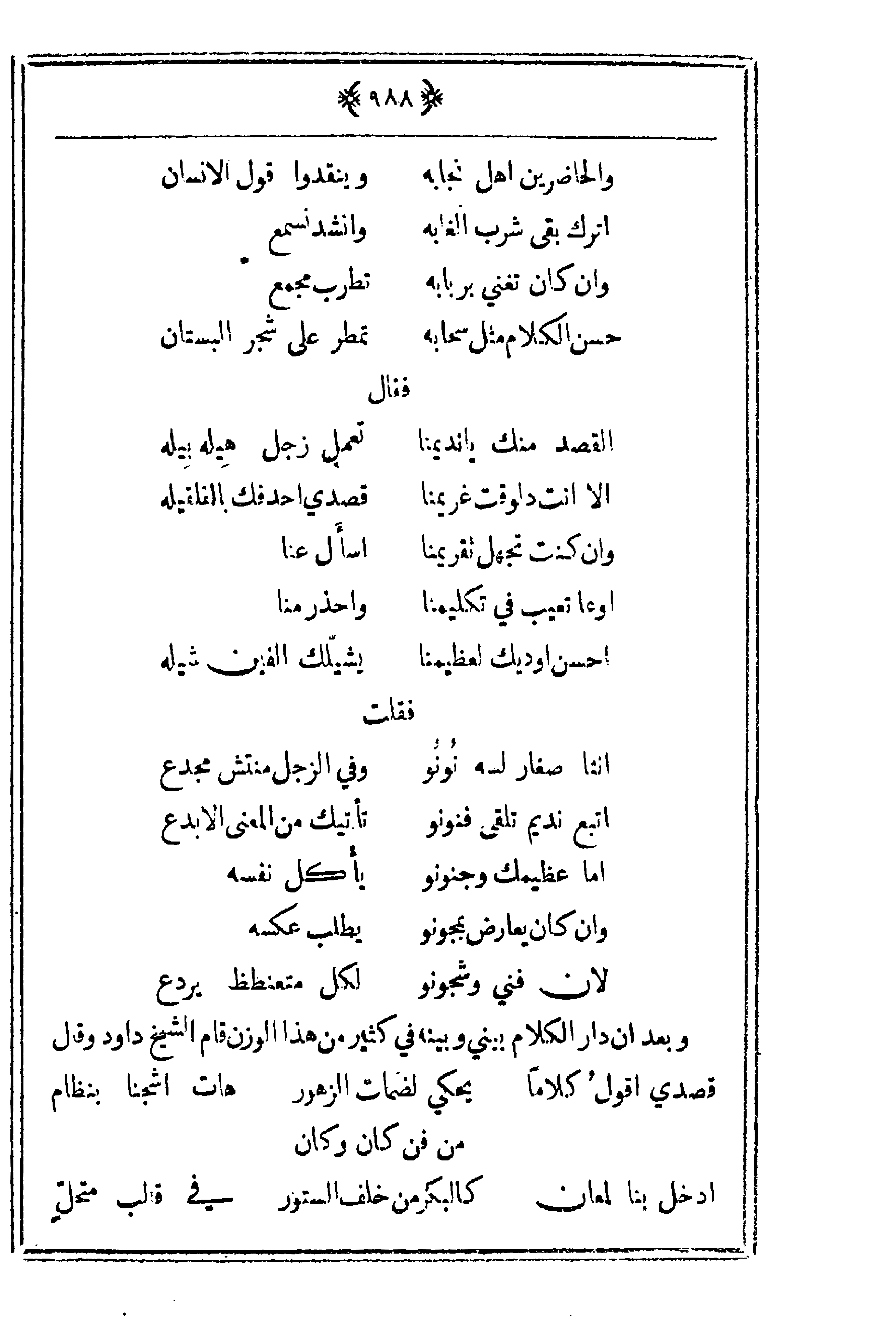 وبعد أن دار الكلام بيني وبينه في كثير من هذا الوزن قام الشيخ داود وقال: