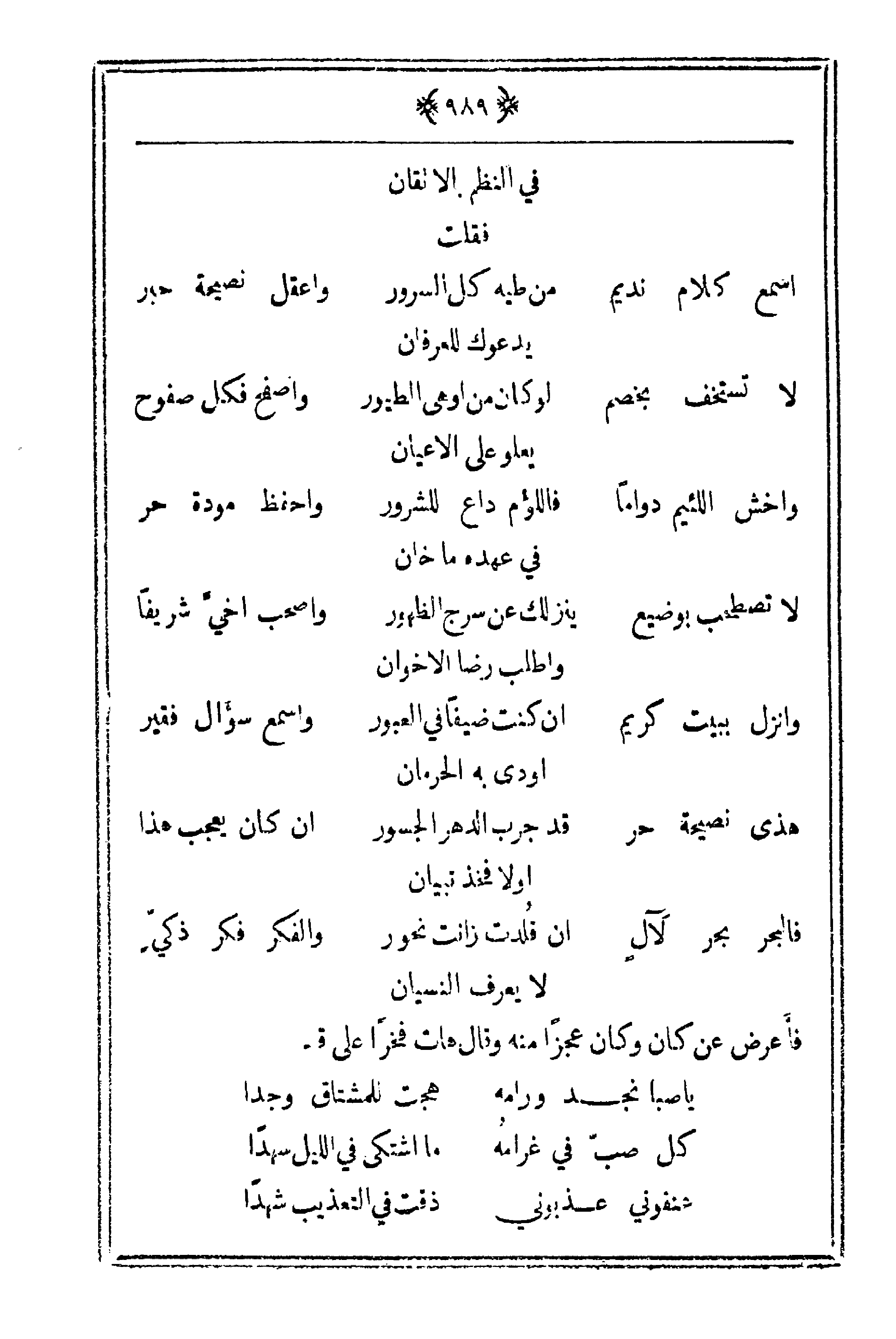 اسمع كلام نديممن طيه كل السرور وأعقل نصيحة حبر