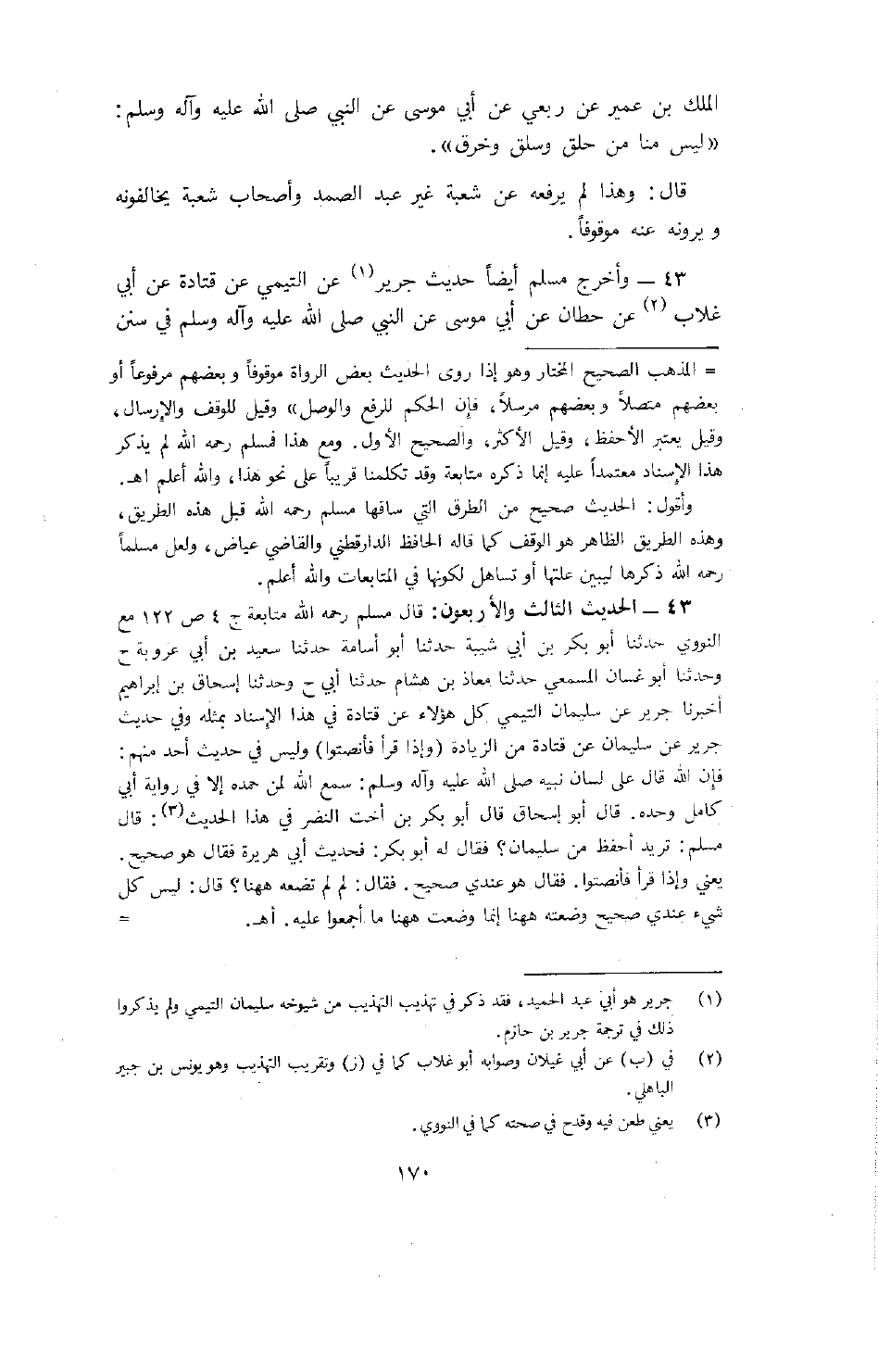 43 - وأخرج مسلم أيضاً حديث جرير عن التيمي عن قتادة عن أبي غلاب عن حطان عن أبي موسىعن النبي (صلى الله عليه وسلم) في سنن