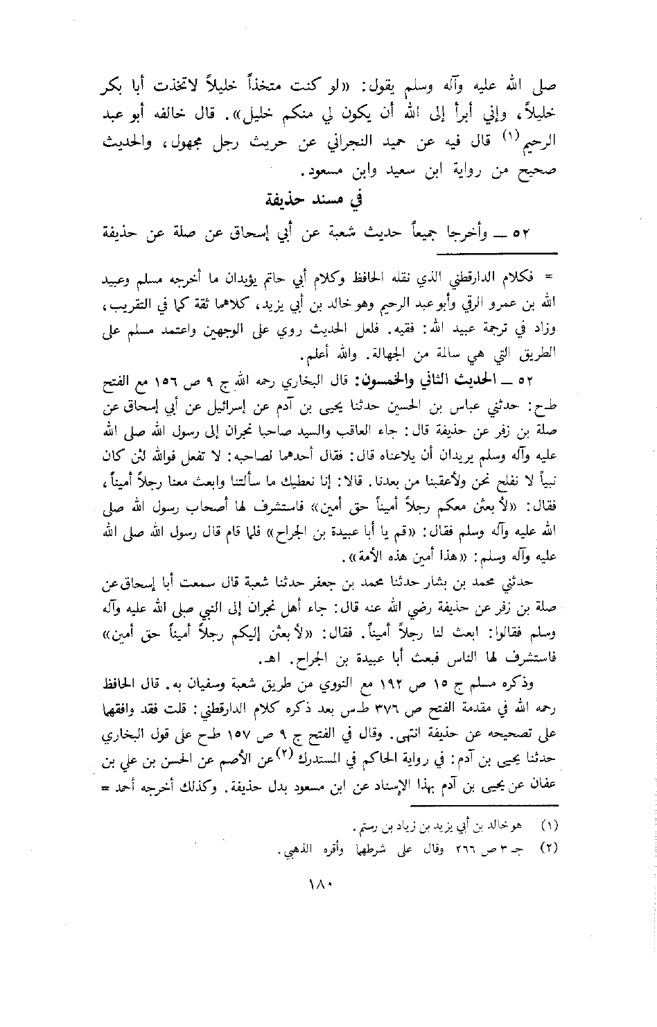 (صلى الله عليه وسلم) يقول: "لو كنت متخذاً خليلاً لاتخذت أبا بكر خليلاً، وإني أبرأ إلى الله أن يكون لي منكم خليل". قال خالفه أبو عبد الرحيم قال فيه عن حميد النجراني عن حريث رجل مجهول، والحديث صحيح من رواية ابن سعيد وابن مسعود.