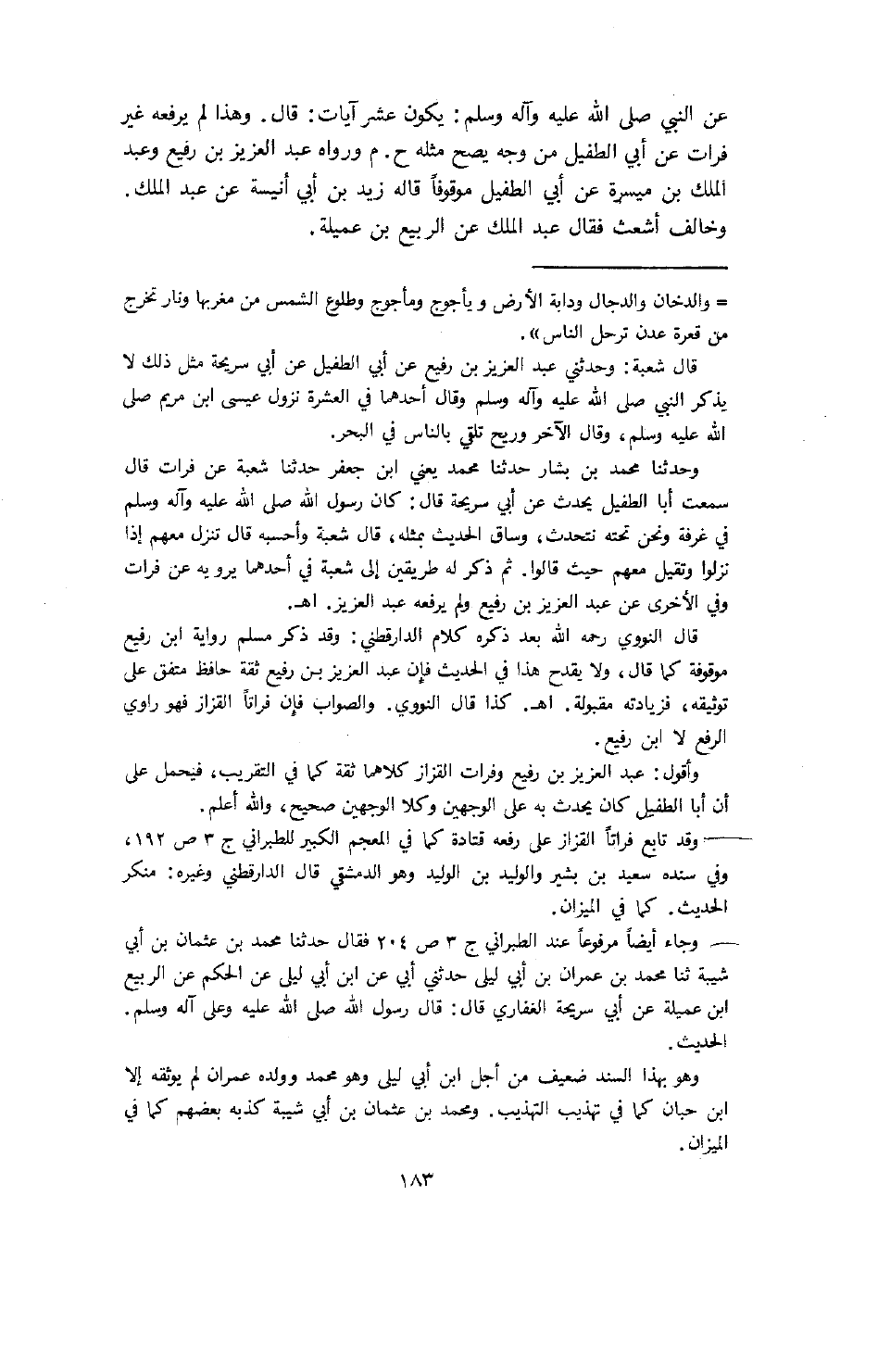 عن النبي (صلى الله عليه وسلم) : يكون عشر آيات: قال. وهذا لم يرفعه غير فرات عن أبي الطفيل من وجه يصح مثله ح. م ورواه عبد العزيز بن رفيع وعبد الملك بن ميسرة عن أبي الطفيل موقوفاً قاله زيد بن أبي أنيسة عن عبد الملك. وخالف أشعث فقال عبد الملك عن الربيع بن عميلة.