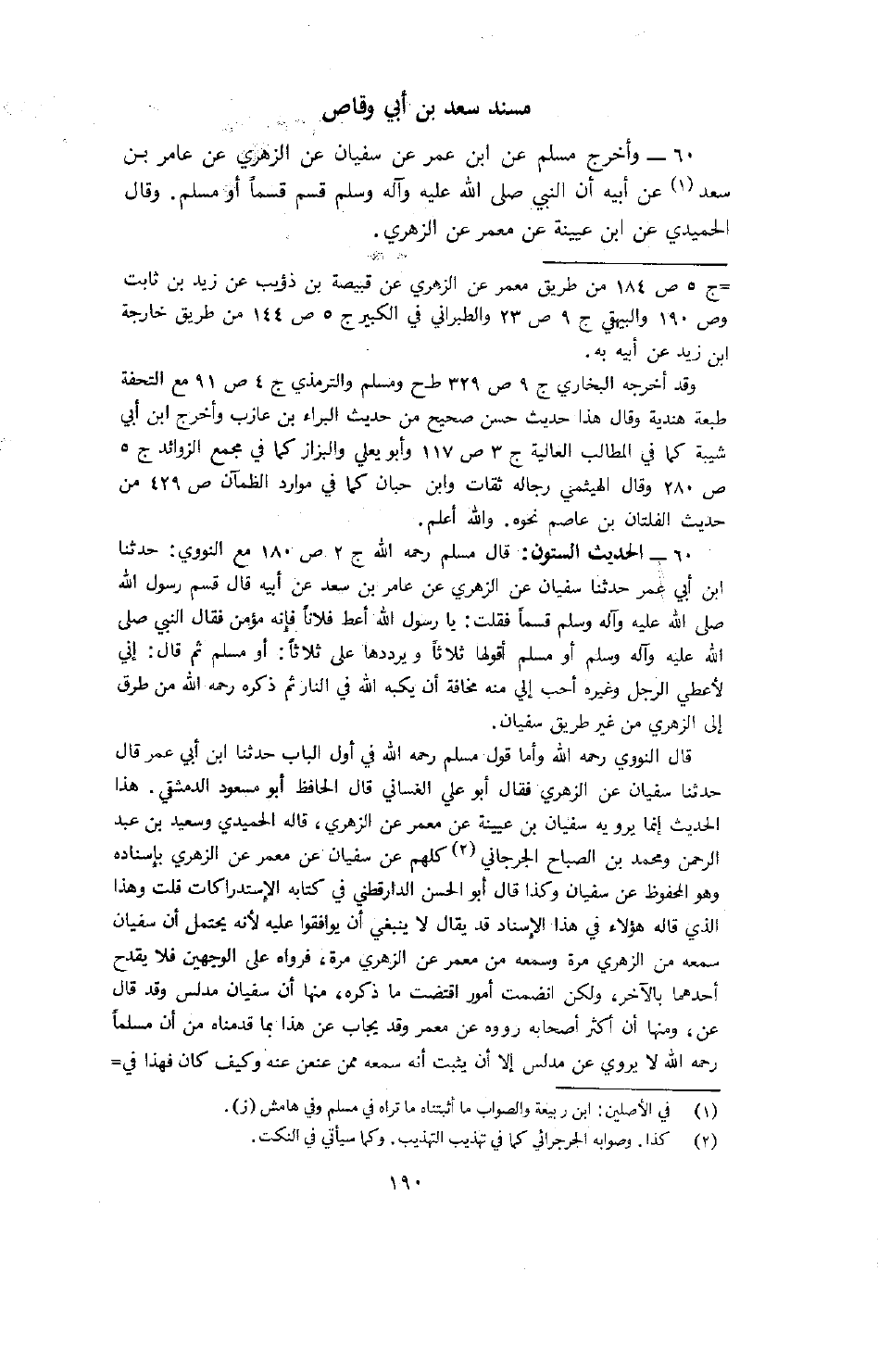 60 - وأخرج مسلم عن ابن عمر عن سفيان عن الزهري عن عامر بن سعد عن أبيه أن النبي (صلى الله عليه وسلم) قسم قسماً أو مسلم. وقال الحميدي عن ابن عيينة عن معمر عن الزهري.