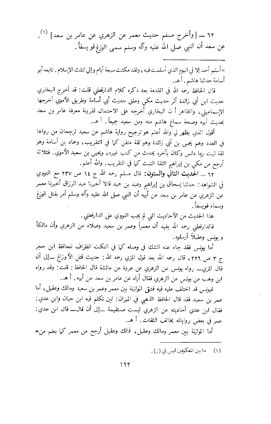 62 -[وأخرج مسلم حديث معمر عن الزهري عن عامر بن سعد] . عن سعد أن النبي (صلى الله عليه وسلم) سمى الوزغ فويسقاً.