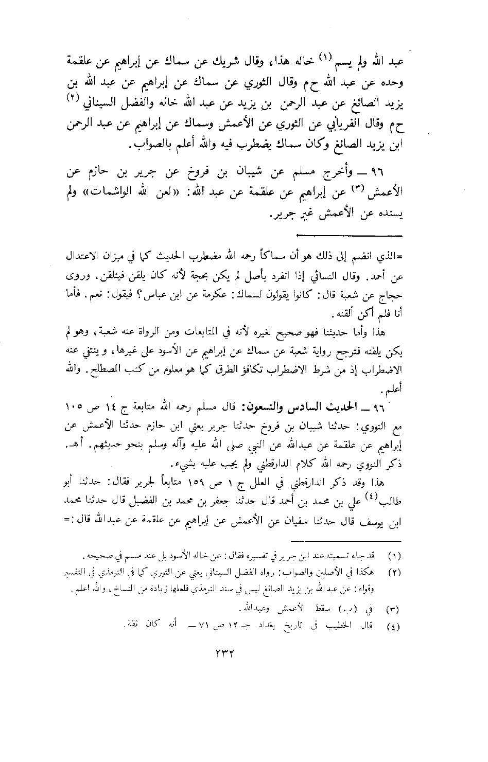96- وأخرج مسلم عن شيبان بن فروخ عن جرير بن حازم عن الأعمش عن إبراهيم عن علقمة عن عبد الله: "لعن الله الواشمات" ولم يسنده عن الأعمش غير جرير.