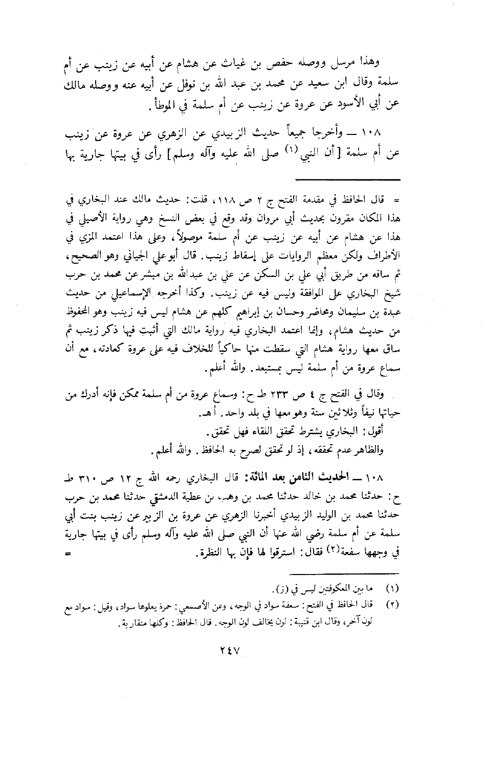 108- وأخرجا جميعاً حديث الزبيدي عن الزهري عن عروة عن زينب عن أم سلمة [أن النبي (صلى الله عليه وسلم) ] رأى في بيتها جارية بها