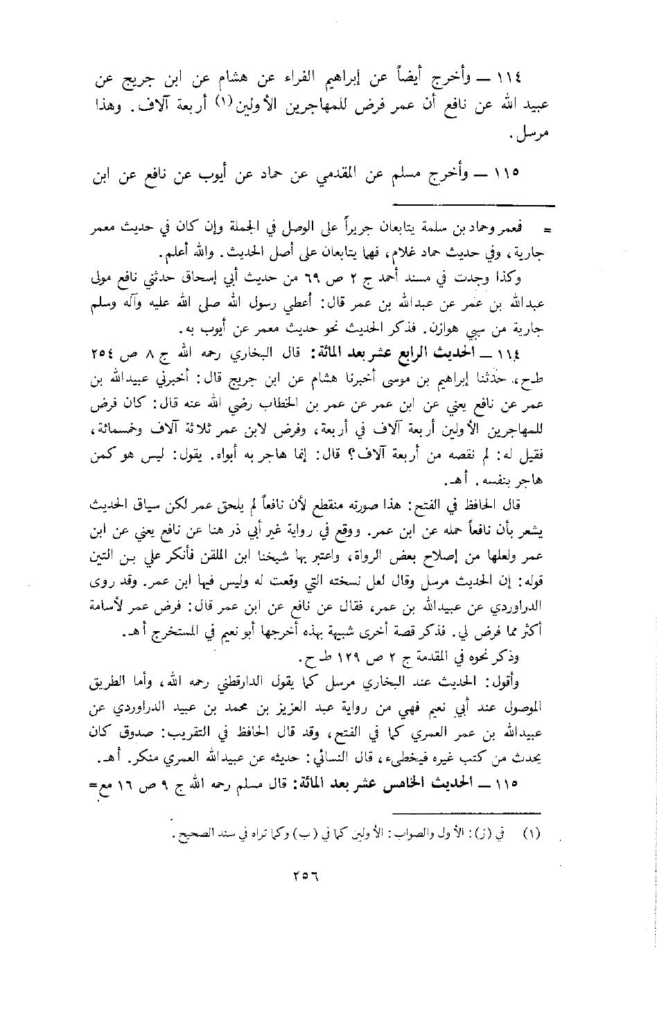 115- وأخرج مسلم عن المقدمي عن حماد عن أيوب عن نافع عن ابن