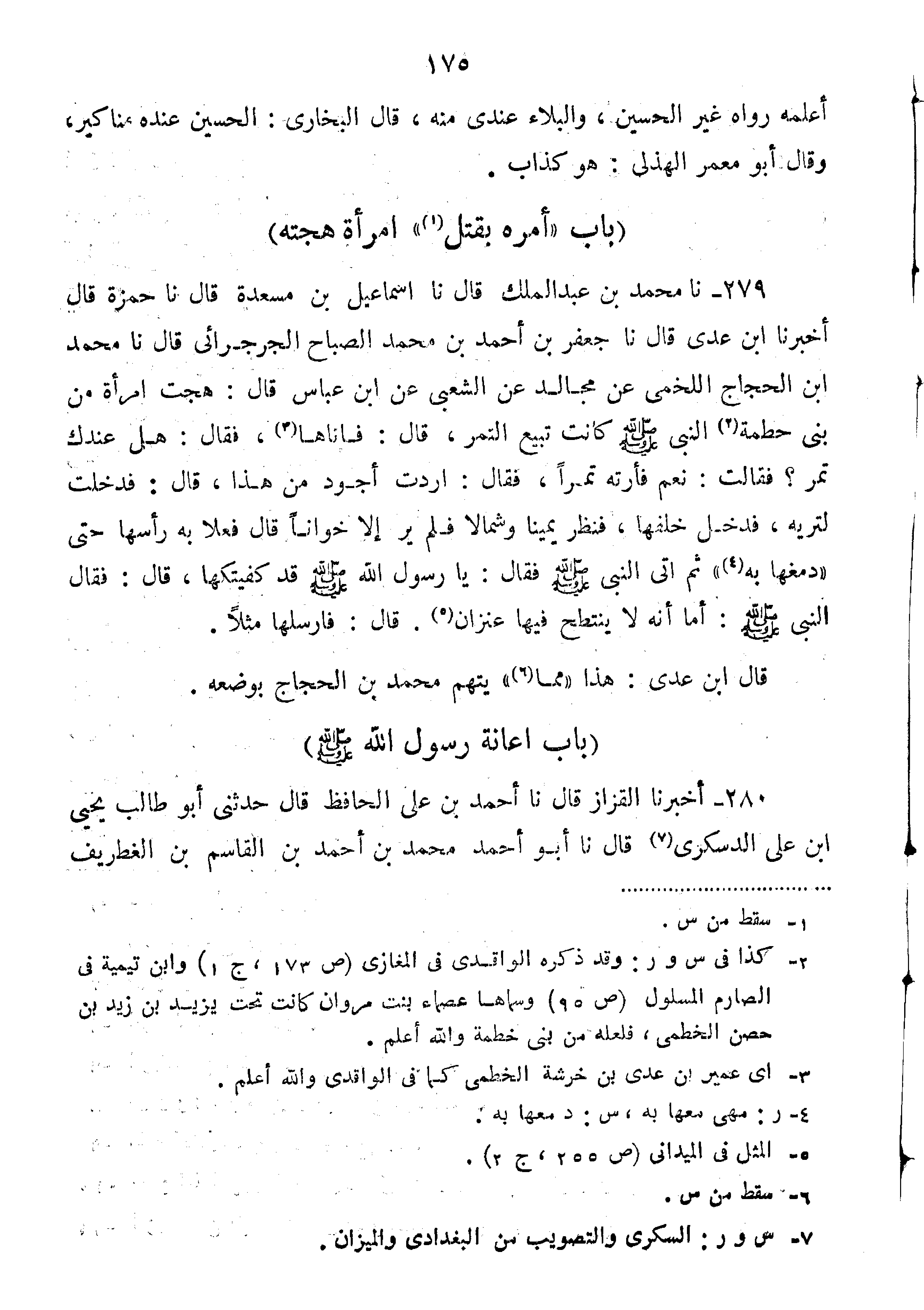 279-نا مُحَمَّدُ بْنُ عَبْدِ الْمَلِكِ قَالَ نا إِسْمَاعِيلُ بْنُ مَسْعَدَةَ قَالَ نا حَمْزَةُ قَالَ أَخْبَرَنَا ابْنُ عَدِيٍّ قَالَ نا جَعْفَرُ بْنُ أَحْمَدَ بن الْجَرْجَرَائِيُّ قَالَ نا مُحَمَّدُ بْنُ الْحَجَّاجِ اللَّخْمِيُّ عَنْ مُجَالِدٍ عَنِ الشَّعْبِيِّ عَنِ ابْنِ عَبَّاسٍ قَالَ هَجَتِ امْرَأَةٌ مِنْ بَنِي حَطَمَةَ النَّبِيَّ صَلَّى اللَّهُ عَلَيْهِ وَسَلَّمَ كَانَتْ تَبِيعُ التَّمْرَ قَالَ فَأَتَاهَا فَقَالَ هَلْ عِنْدَكِ تَمْرٌ فَقَالَتْ نَعَمْ فَأَرَتْهُ تَمْرًا فَقَالَ أَرَدْتُ أَجْوَدَ مِنْ هَذَا قَالَ فَدَخَلَتْ لَتُرِيهِ.
