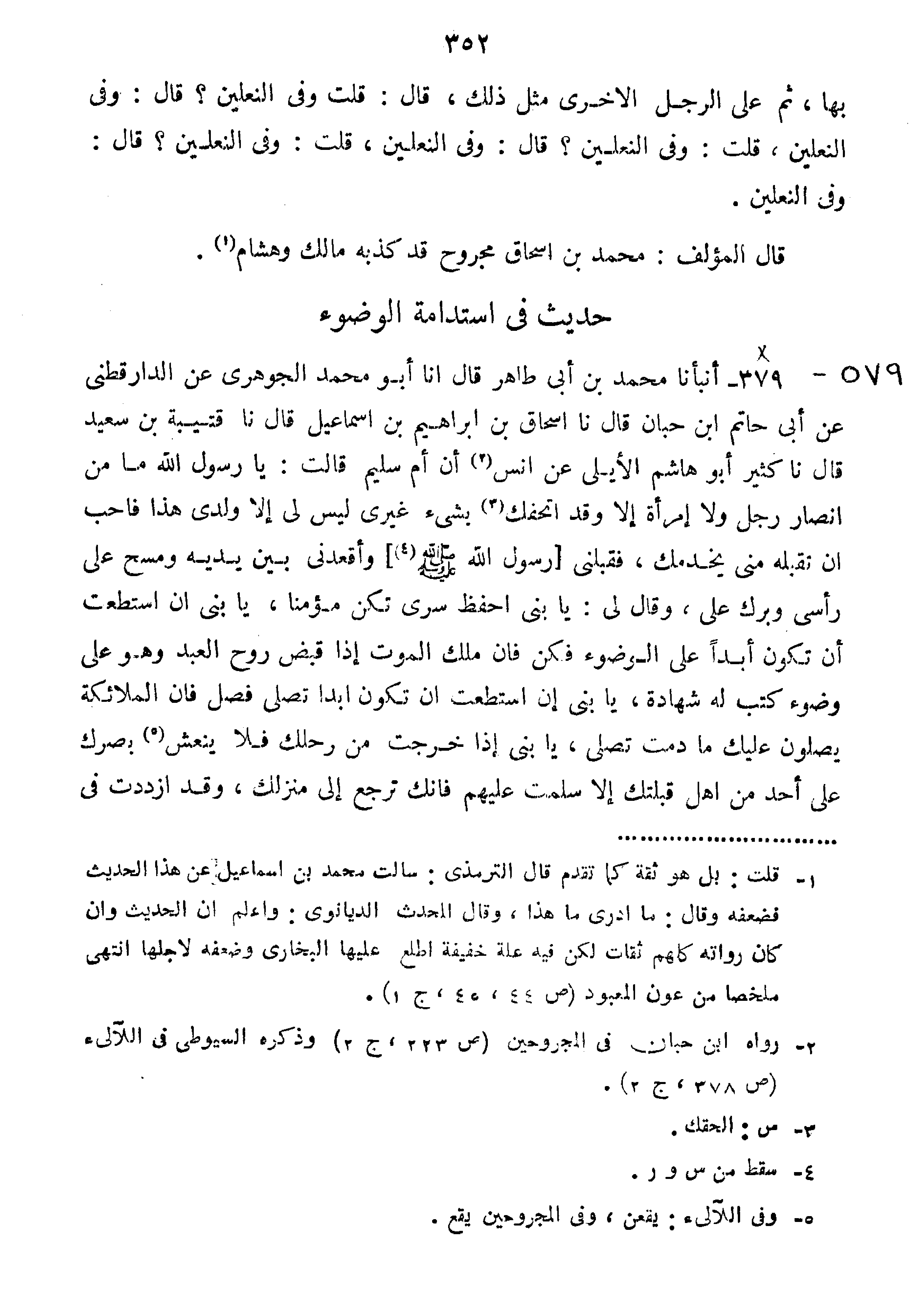 حَدِيثٌ فِي اسْتِدَامَةِ الْوُضُوءِ.
