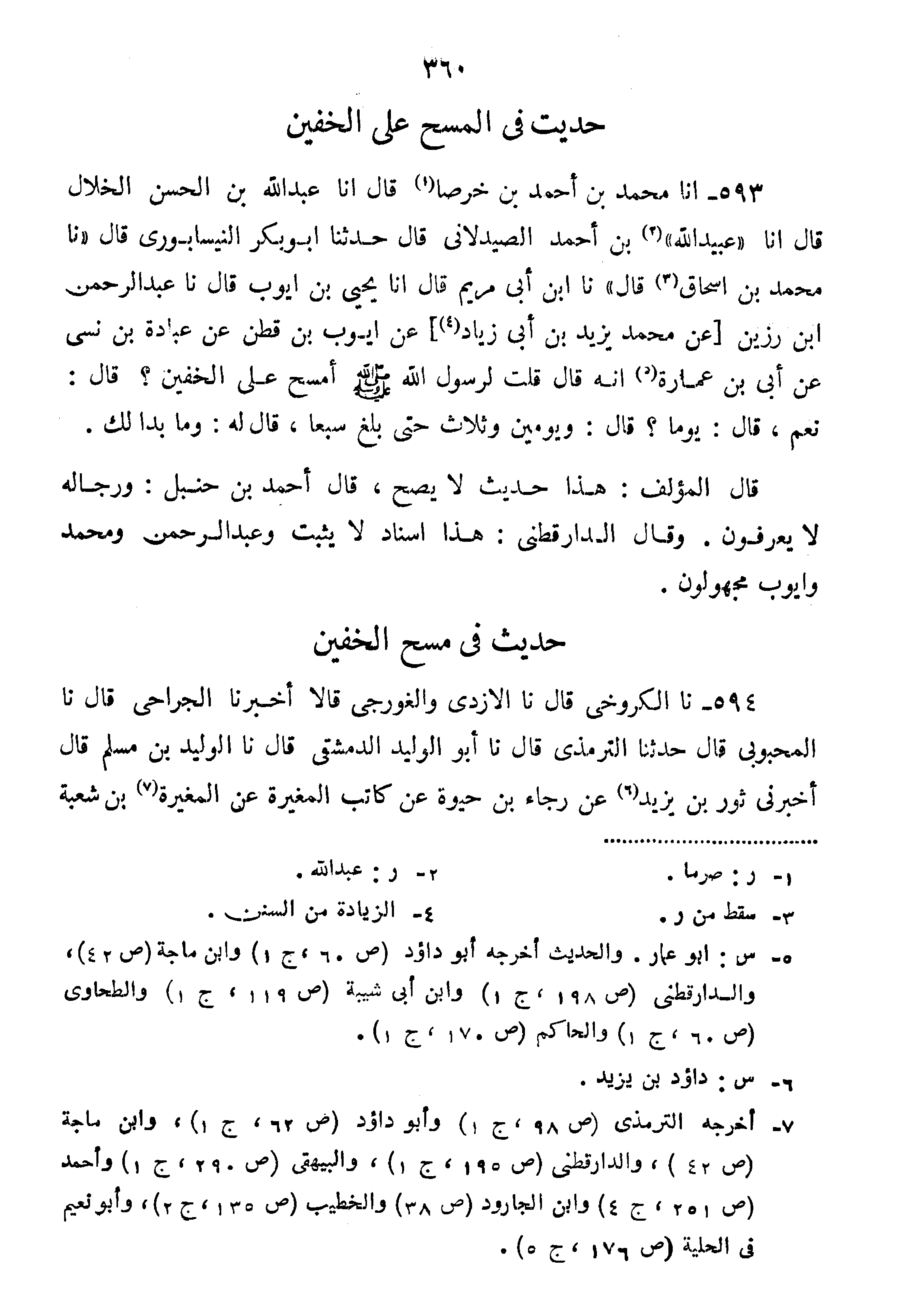حَدِيثٌ فِي مَسْحِ الْخُفَّيْنِ.