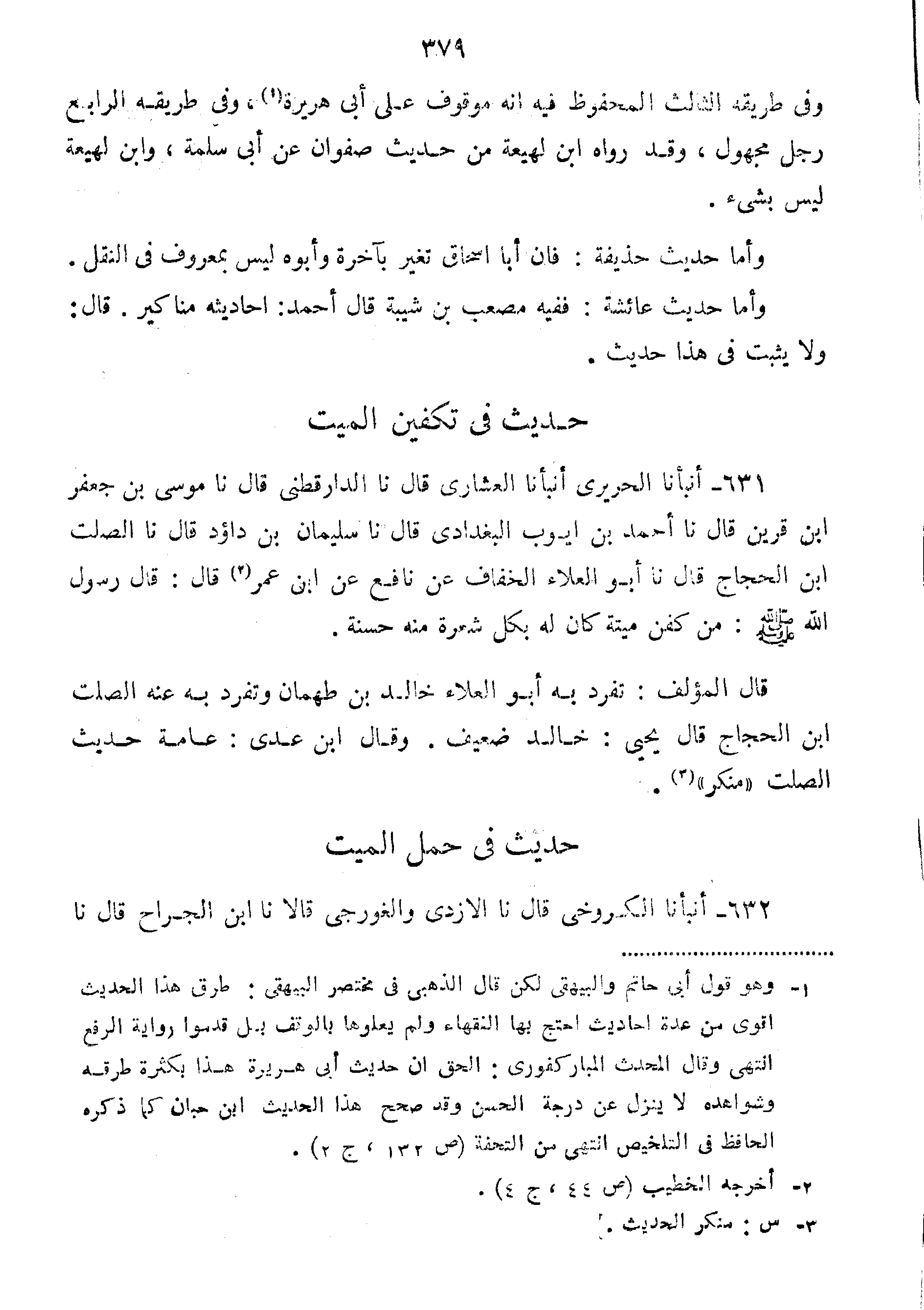 631-أَنْبَأَنَا الْحَرِيرِيُّ أَنْبَأَنَا الْعُشَارِيُّ قَالَ نا الدارقطني قَالَ نا مُوسَى بْنُ جَعْفَرِ بْنِ قَرِينٍ قَالَ نا أَحْمَدُ بْنُ أَيُّوبَ الْبَغْدَادِيُّ قَالَ نا سُلَيْمَانُ بْنُ دَاؤُدَ قَالَ نا الصَّلْتُ بْنُ الْحَجَّاجِ قَالَ نا أَبُو الْعَلاءِ الْخَفَّافُ عَنْ نَافِعٍ عَنِ ابْنِ عُمَرَ قَالَ: قَالَ رَسُولِ اللَّهِ صَلَّى اللَّهُ عَلَيْهِ وسلم:"من كفن ميتا كَانَ لَهُ بِكُلٍّ شَعْرَةٍ مِنْهُ حَسَنَةً".
