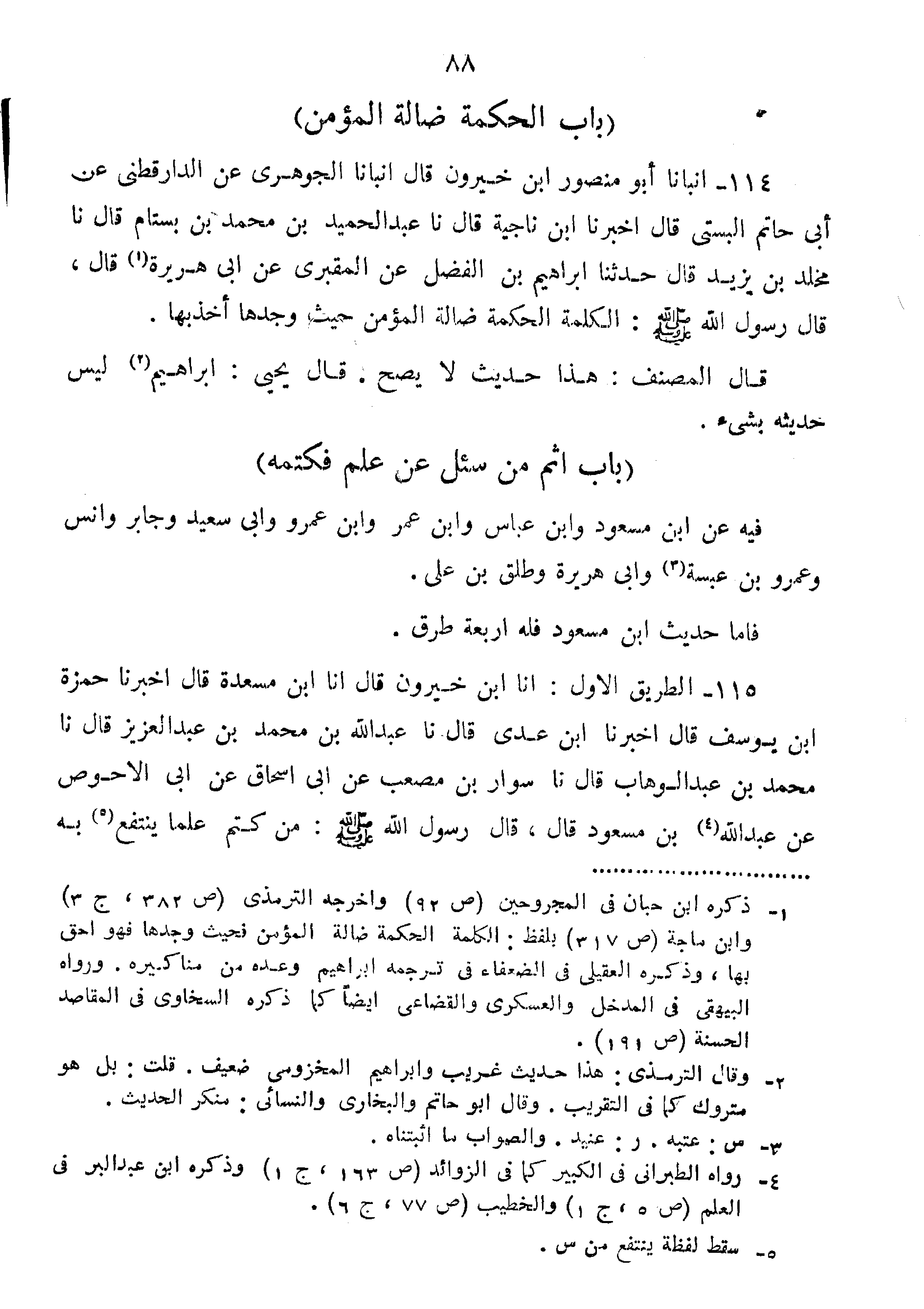 بَابُ الْحِكْمَةُ ضَالَّةُ الْمُؤْمِنِ.
