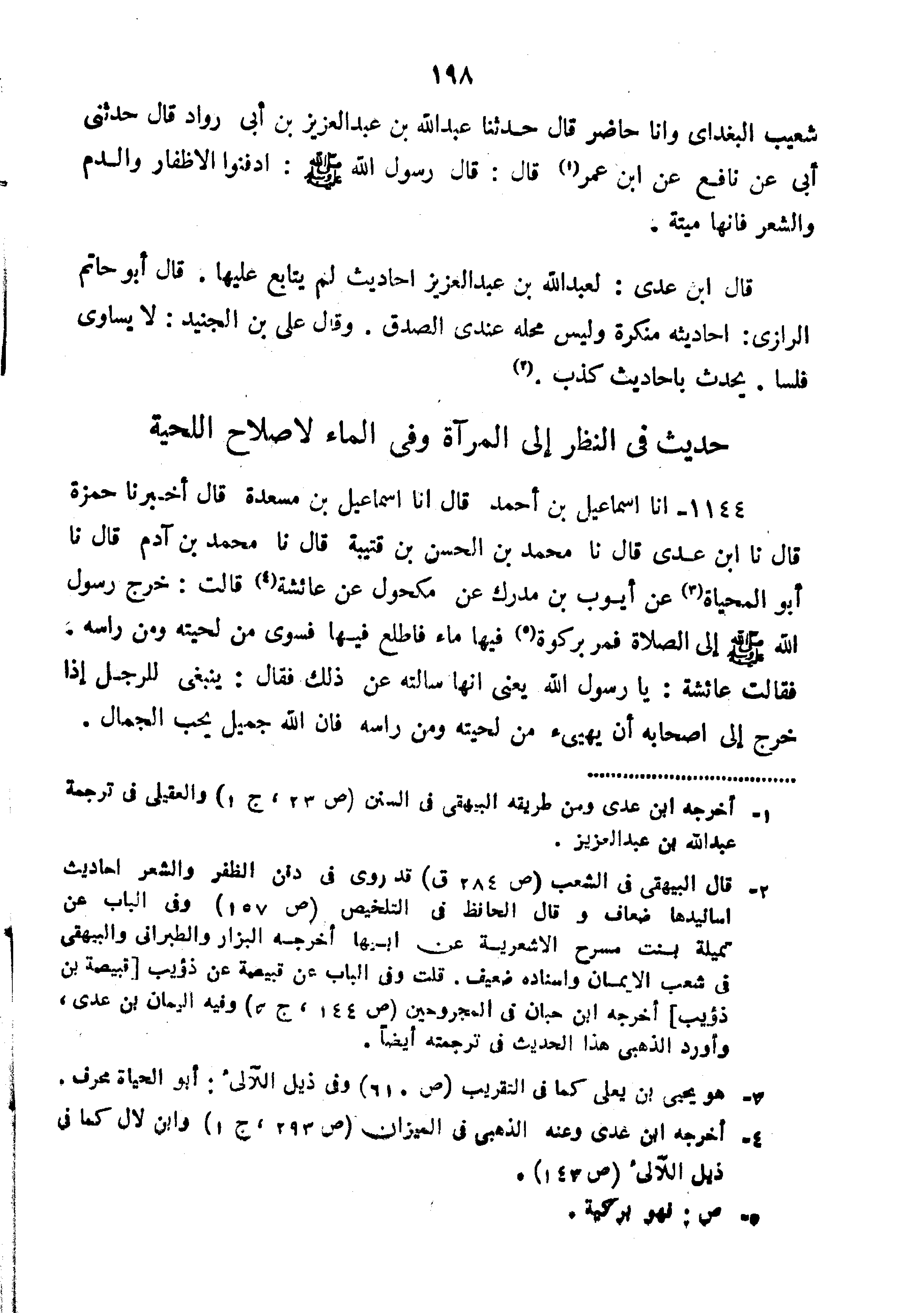 حَدِيثٌ فِي النظر إلى المرآة وَفِي الماء لإصلاح اللحية