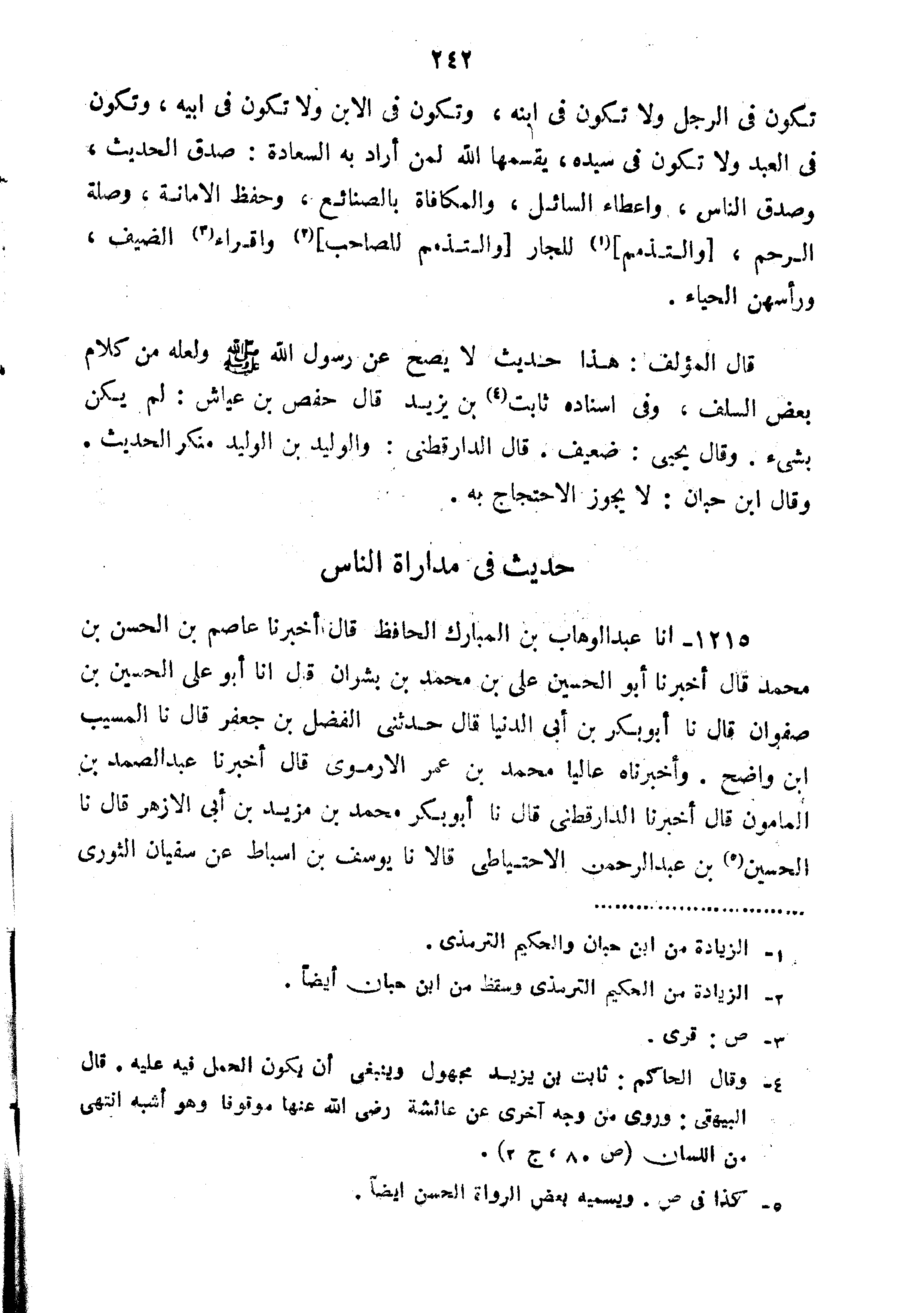 قال المؤلف: "هَذَا حَدِيثٌ لا يَصِحُّ عَنْ رَسُولِ اللَّهِ صَلَّى اللَّهُ عَلَيْهِ وَسَلَّمَ ولعله من كلام بعض السلف وَفِي إسناده ثابت بْن يزيد قال حَفْص بْن عياش لَمْ يَكُنْ بِشَيْءٍ وَقَالَ يَحْيَى ضعيف قال الدارقطني والوليد بْن الوليد منكر الحديث".
