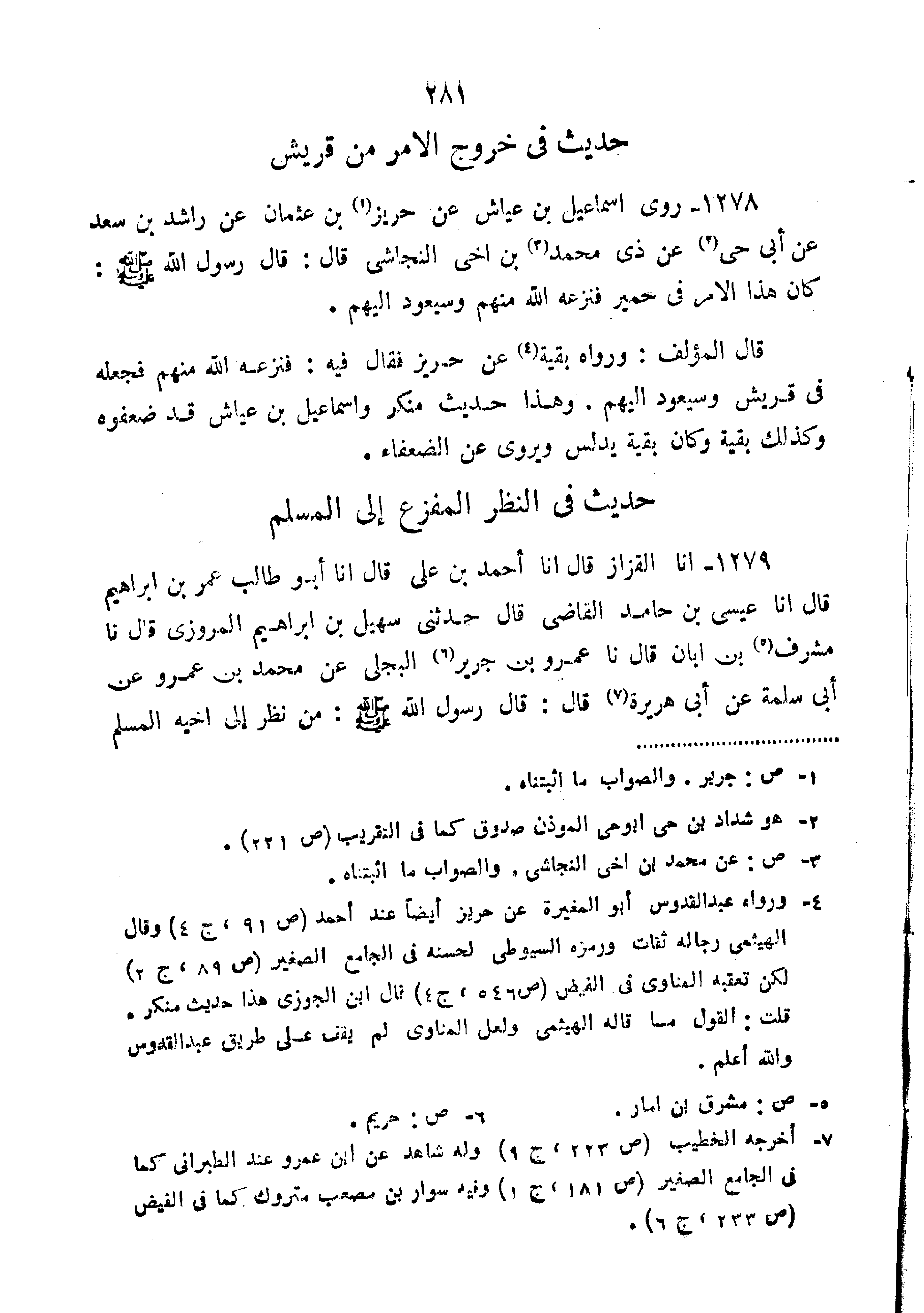 1278-رَوَى إِسْمَاعِيلُ بْنُ عَيَّاشٍ عَنْ حُرَيْزِ بْنِ عُثْمَانَ عَنْ رَاشِدِ بْنِ سَعْدٍ عَنْ أَبِي حَيٍّ عَنْ ذِي مُحَمَّدِ بْنِ أَخِي النَّجَاشِيِّ قَالَ: قَالَ رَسُولُ اللَّهِ صَلَّى اللَّهُ عَلَيْهِ وَسَلَّمَ: "كان هَذَا الأَمْرُ فِي حِمْيَرَ فَنَزَعَهُ اللَّهُ مِنْهُمْ وَسَيَعُودُ إِلَيْهِمْ".