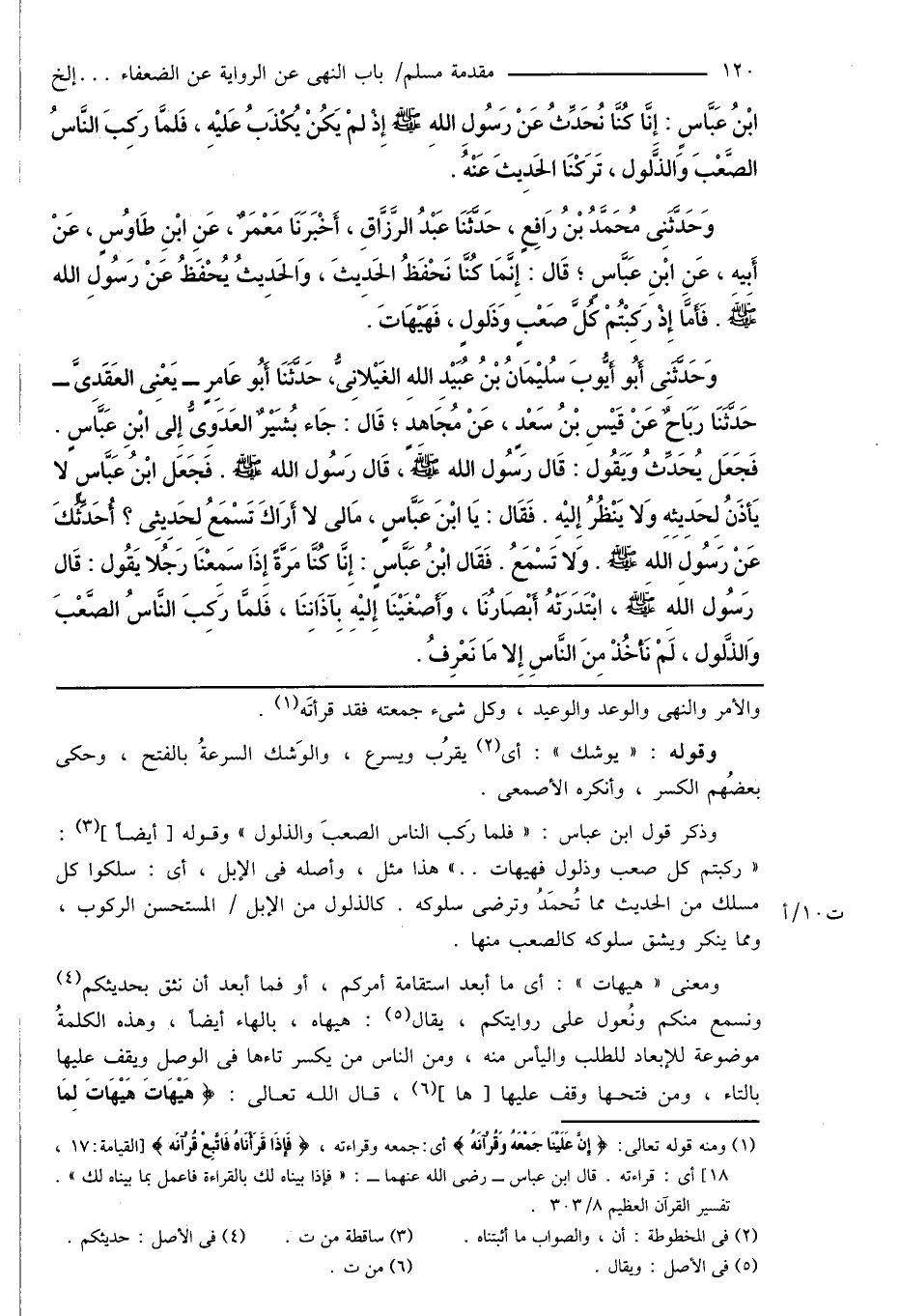 وَحَدَّثَنِى مُحَمَّدُ بْنُ رَافِعٍ، حَدَّثَنَا عَبْدُ الرَّزَّاقِ، أَخْبَرَنَا مَعْمَرٌ، عَنِ ابْنِ طَاوُسٍ، عَنْ أَبِيهِ، عَنِ ابْنِ عَبَّاسٍ؛ قَال: إِنَّمَا كُنَّا نَحْفَظُ الحَدِيثَ، وَالحَدِيثُ يُحْفَظُ عَنْ رَسُولِ الله صَلَّى اللهُ عَلَيْهِ وَسَلَّمَ. فَأَمَّا إِذْ رَكِبْتُمْ كُلَّ صَعْبٍ وَذَلولٍ، فَهَيْهَاتَ.
