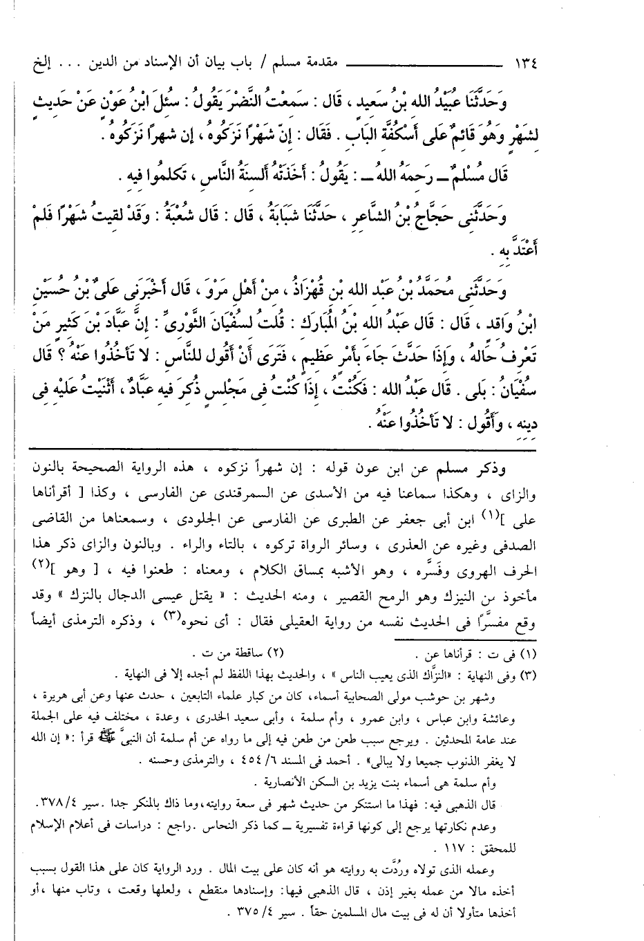 وَحَدَّثَنَا عُبَيْدُ اللهِ بْنُ سَعِيدٍ، قَال: سَمِعْتُ النَّضْرَ يَقُولُ: سُئِلَ ابْنُ عَوْنٍ عَنْ حَدِيثٍ لِشَهْرٍ وَهُوَ قَائِمٌ عَلى أَسْكُفَّةِ البَابِ. فَقَالَ: إِنّ شَهْرًا نَزَكُوهُ، إن شهرًا نَزَكُوهُ.