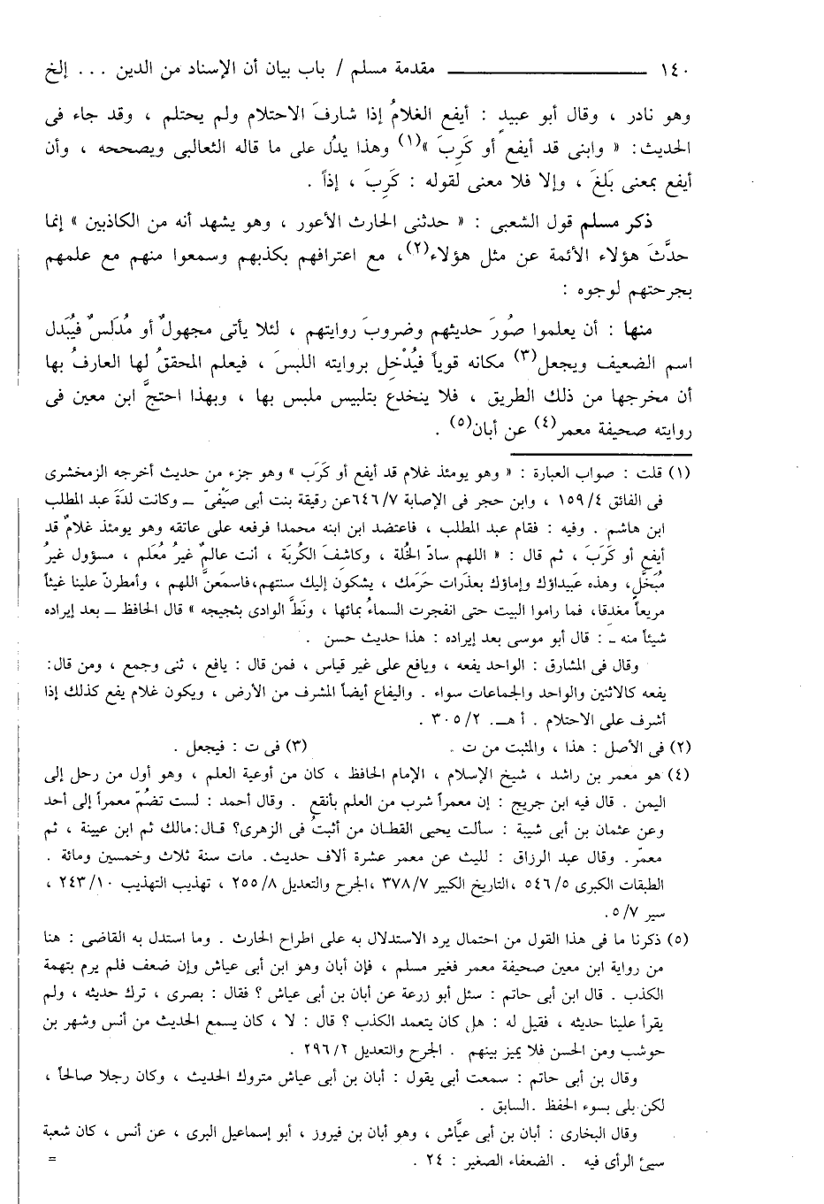 (¬5) ذكرنا ما فى هذا القول من احتمال يرد الاستدلال به على اطراح الحارث. وما استدل به القاضى: هنا من رواية ابن معين صحيفة معمر فغير مسلم، فإن أبان وهو ابن أبى عياش وإن ضعف فلم يرم بتهمة الكذب. قال ابن أبى حاتم: سئل أبو زرعة عن أبان بن أبى عياش؟ فقال: بصرى، ترك حديثه، ولم يقرأ علينا حديثه، فقيل له: هل كان يتعمد الكذب؟ قال: لا، كان يمع الحديث من أنس وشهر بن حوشب ومن الحسن فلا يميز بينهم. الجرح والتعديل 2/ 266.