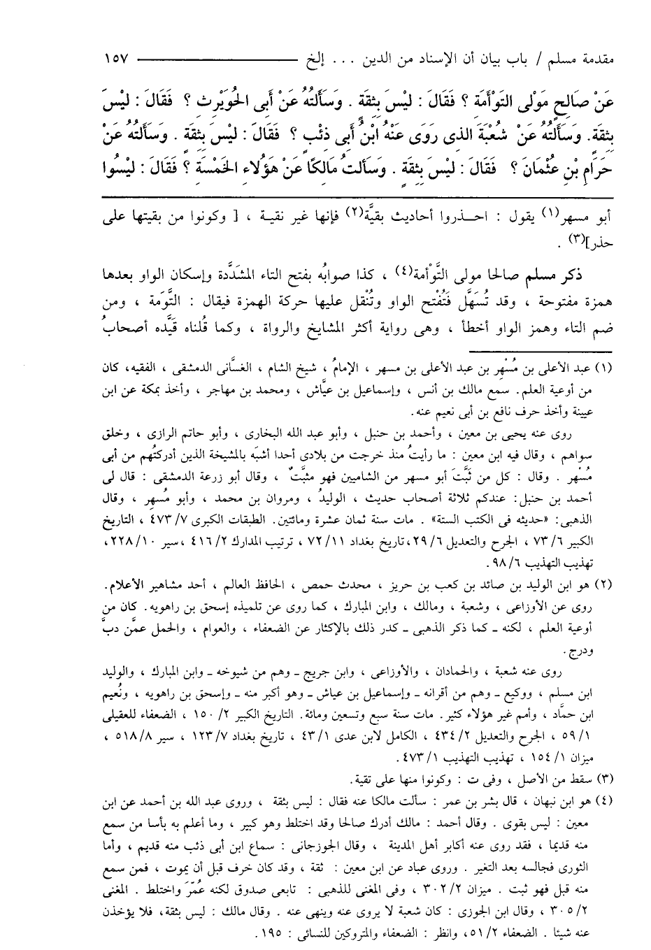 ذكر مسلم صالحاً مولى التَّوْأمة (¬4)، كذا صوابُه بفتح التاء المشَدَّدة وإسكان الواو بعدها همزة مفتوحة، وقد تُسَهَّل فَتُفْتح الواو وتُنْقل عليها حركة الهمزة فيقال: التَّوَمة، ومن ضم التاء وهمز الواو أخطأ، وهى رواية أكثر المشايخ والرواة، وكما قُلناه قَيَّده أصحابُ