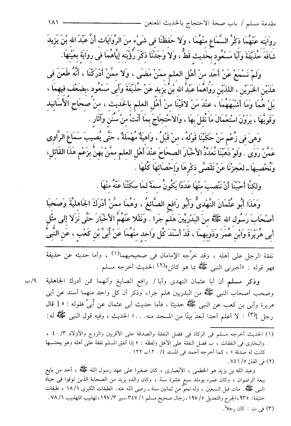 وَهَذَا أَبُو عُثْمَانَ النَّهْدِىُّ وَأَبُو رَافِعٍ الصَّائِغُ، وَهُمَا مِمَّنْ أَدْرَكَ الجَاهِلِيَّةَ وَصَحِبَا أَصْحَابَ رَسُولِ اللهِ صَلَّى اللهُ عَلَيْهِ وَسَلَّمَ مِنَ البَدْرِيِّينَ هَلم جَرا. وَنَقْلا عَنْهُمُ الأَخْبَارَ حَتَّى نَزَلا إِلى مِثْلِ أَبِى هُرَيْرَةَ وَابْنِ عُمَرَ وَذَوِيِهِمَا، قَدْ أَسْنَدَ كُل وَاحِدٍ مِنْهُمَا عَنْ أُبَىِّ بْنِ كَعْبٍ، عَنِ النَّبِىِّ