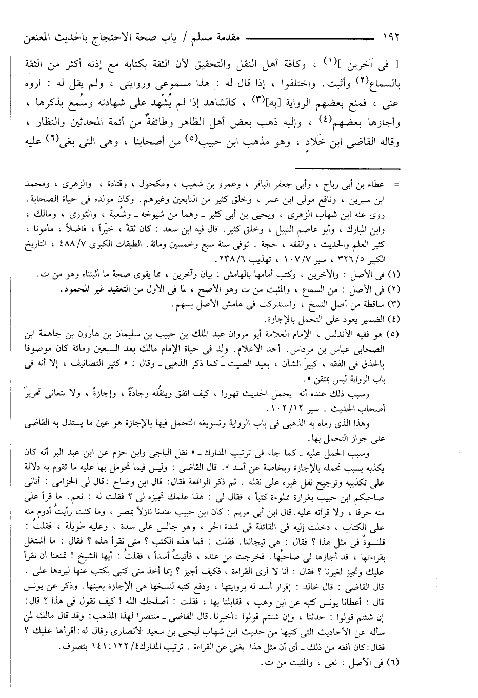 وسبب الحمل عليه -كما جاء فى ترتيب المدارك- " نقل الباجى وابن حزم عن ابن عبد البر أنه كان يكذبه بسبب تحمله بالإجازة وبخاصة عن أسد ". قال القاضى: وليس فيما تحومل بها عليه ما تقوم به دلالة على تكذيبه وترجيح نقل غيره على نقله. ثم ذكر الواقعة فقال: قال ابن وضاح: قال لى الحزامى: أتانى صاحبكم ابن حبيب بغرارة مملوءة كتباً، فقال لى: هذا علمك تجيزه لى؟ فقلت له: نعم. ما قرأ على منه حرفاً، ولا قرأته عليه. قال ابن أبى مريم: كان ابن حبيب عندنا نازلاً بمصر، وما كنت رأيتُ أدوم منه على الكتاب، دخلت إليه فى القائلة فى شدة الحر، وهو جالس على سدة، وعليه طويلة، فقلتُ: قلنسوةٌ فى مثل هذا؟ فكتال: هى تيجاننا. فقلت: فما هذه الكتب؟ متى تقرأ هذه؟ فقال: ما أشتغل بقراءتها، قد أجازها لى صاحبُها. فخرجت من عنده، فأتيتُ أسداً، فقلتُ: أيها الشيخ! تمنعنا أن نقرأ عليك وتجيز لغيرنا؟ فقال: أنا لا أرى القراءة، فكيف أجيز؟ إنما أخذ منى كتبى يكتب عنها ليردها على. قال القاضى: قال خالد: إقرار أسد له بروايتها، ودفع كتبه لنسخها هى الإجازة بعينها. وذكر عن يونس قال: أعطانا يونس كتبه عن ابن وهب، فقابلنا بها، فقلت: أصلحك الله! كيف نقول فى هذا؟ قال: إن شئتم قولوا: حدثنا، وإن شئتم قولوا: أخبرنا. قال القاضى -منتصراً لهذا المذهب: وقد قال مالك لمن سأله عن الأحاديث التى كتبها من حديث ابن شهاب ليحيى بن سعيد الأنصارى وقال له: أقرأها عليك؟ فقال: كان أفقه من ذلك- أى أن مثل هذا يغنى عن القراءة. ترتب المدارك 4/ 122: 141 بتصرف.
