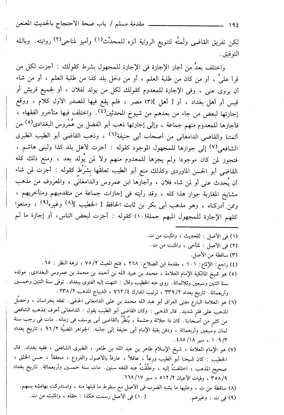 (¬4) راجع: الإلماع: 101، مقدمة ابن الصلاح: 268، فتح المغيث 2/ 75، نزهة النظر: 65.