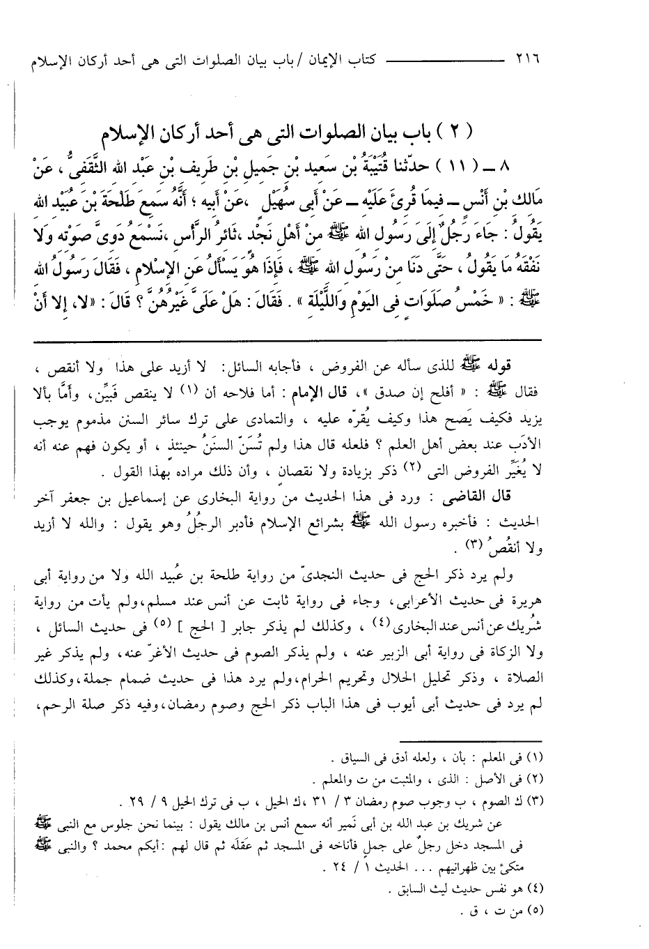 (2) باب بيان الصلوات التى هى أحد أركان الإسلام