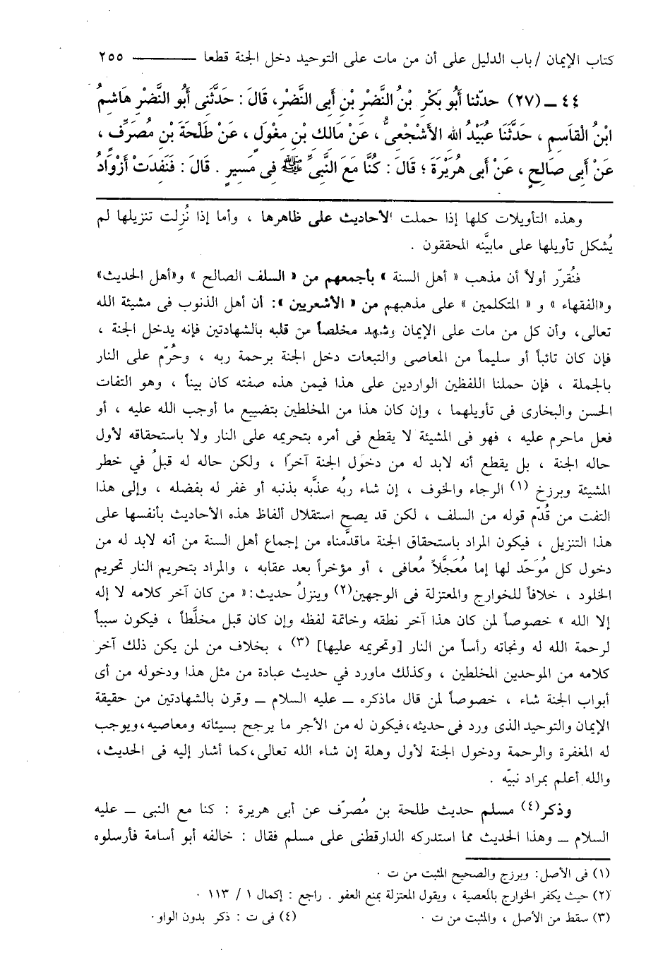 (¬2) حيث يكفر الخوارج بالمعصية، ولقول المعتزلة بمنع العفو. راجع: إكمال 1/ 113.
