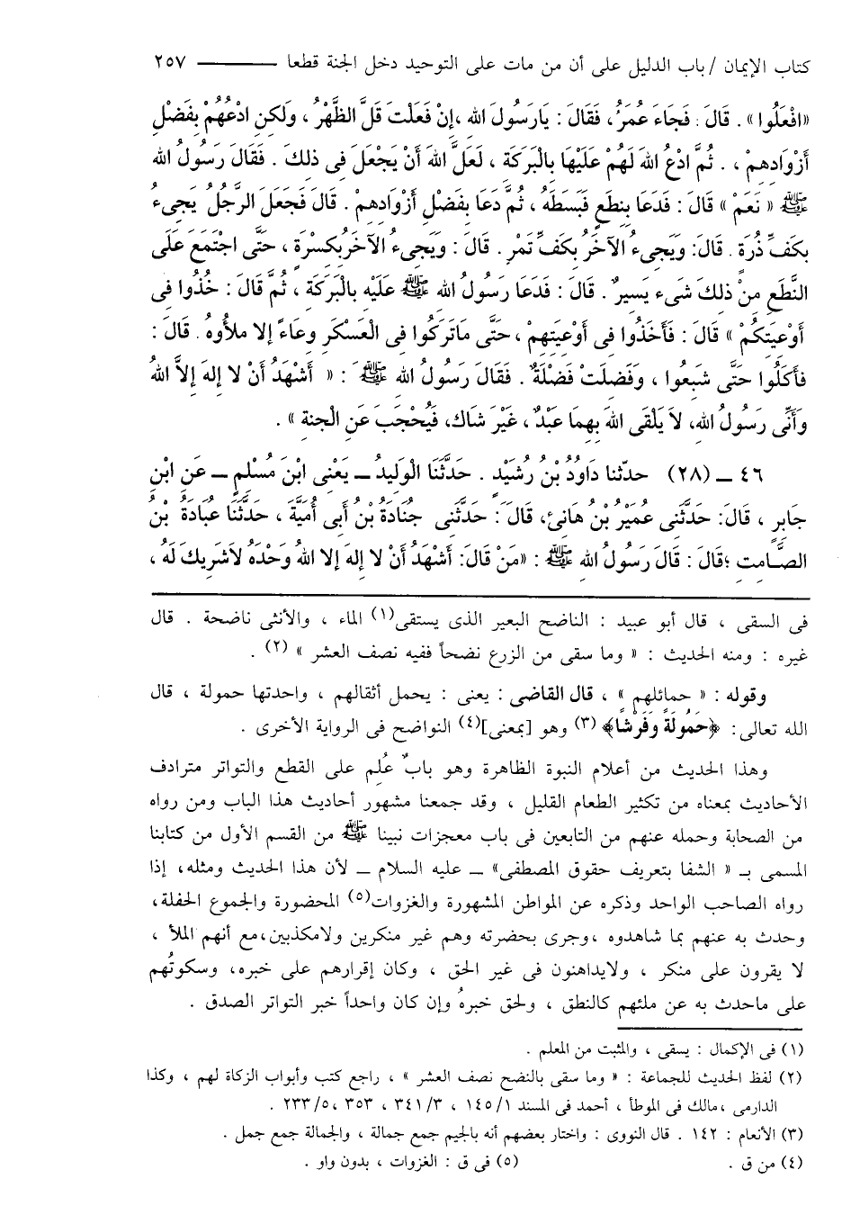 (¬2) لفظ الحديث للجماعة: " وما سقى بالنضح نصف العشر "، راجع كتب وأبواب الزكاة لهم، وكذا الدارمى، مالك فى الموطأ، أحمد فى المسند 1/ 145، 3/ 341، 353، 5/ 233.