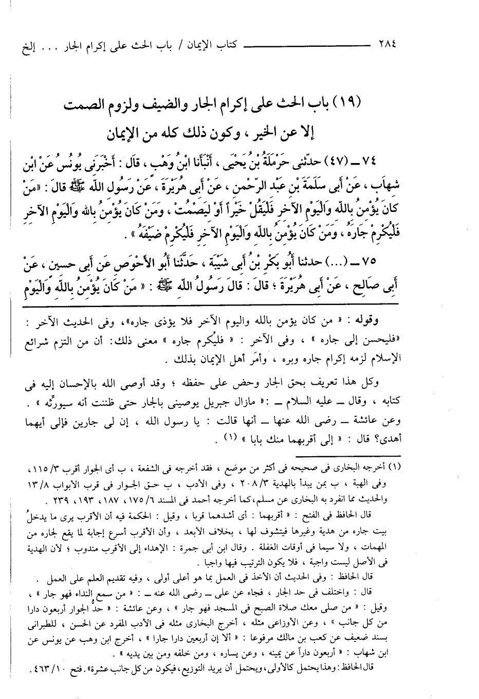 (19) باب الحث على إكرام الجار والضيف ولزوم الصمت إلا عن الخير، وكون ذلك كله من الإيمان