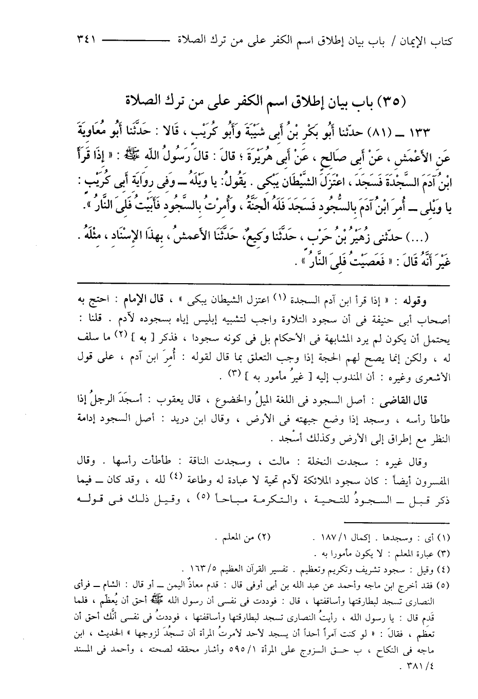 (35) باب بيان إطلاق اسم الكفر على من ترك الصلاة