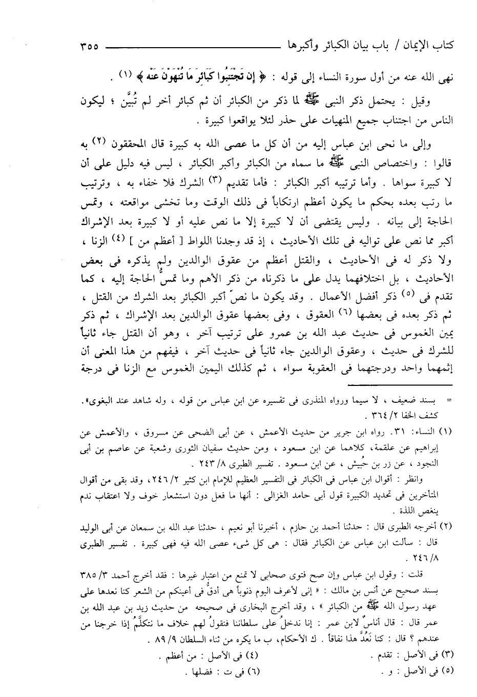 (¬1) النساء: 31. رواه ابن جرير من حديث الأعمش، عن أبى الضحى عن مسروق، والأعمش عن إبراهيم عن علقمة، كلاهما عن ابن مسعود، ومن حديث سفيان الثورى وشعبة عن عاصم بن أبى النجود، عن زر بن حُبيش، عن ابن مسعود. تفسير الطبرى 8/ 243.