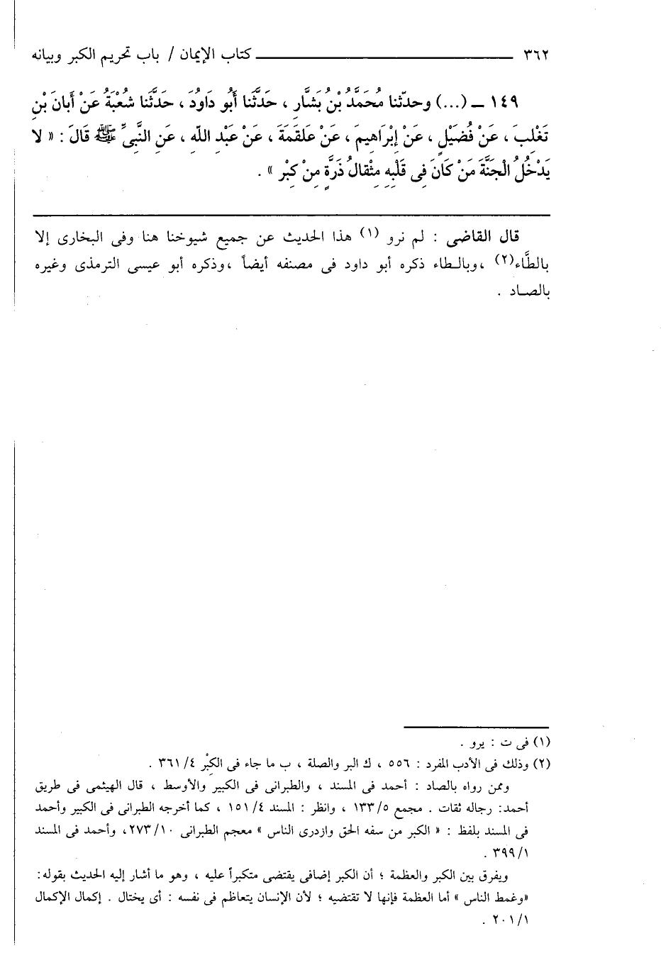 (¬2) وذلك فى الأدب المفرد: 556، ك البر والصلة، ب ما جاء فى الكِبْر 4/ 361.