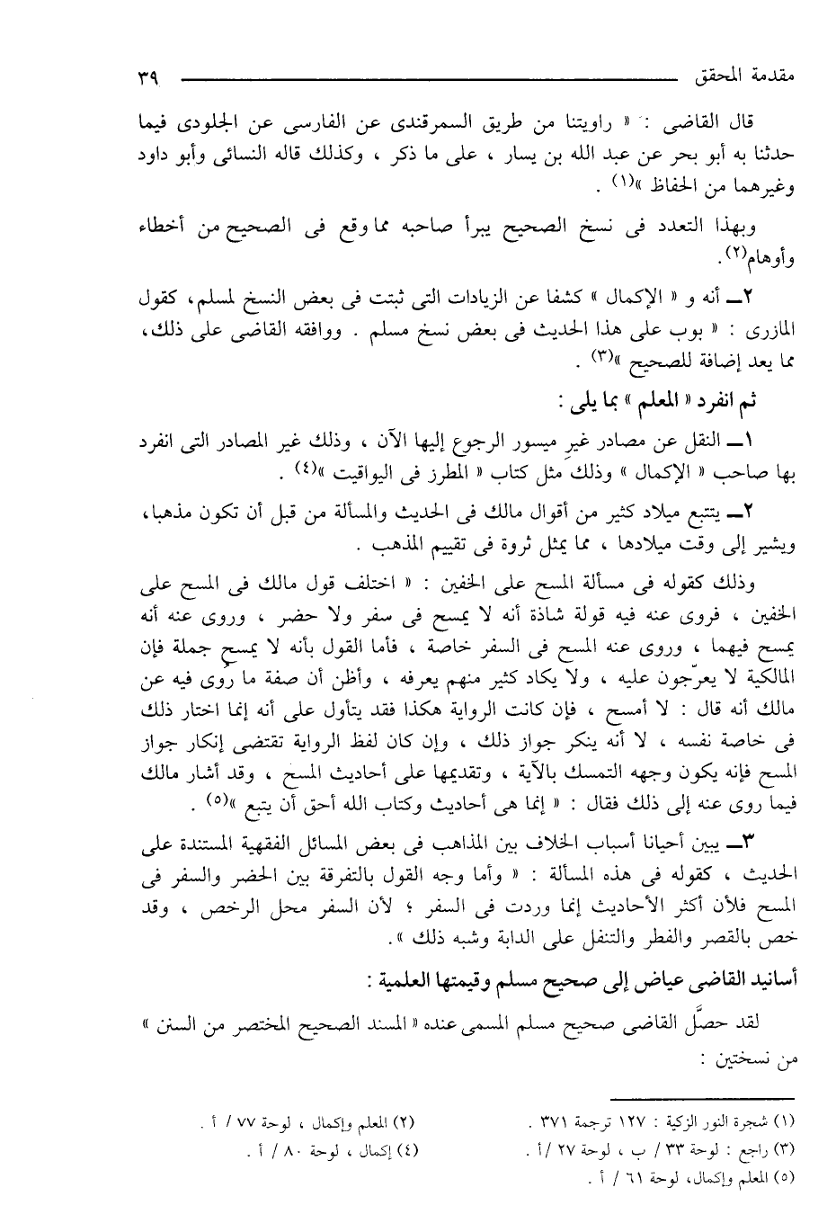 أسانيد القاضى عياض إلى صحيح مسلم وقيمتها العلمية: