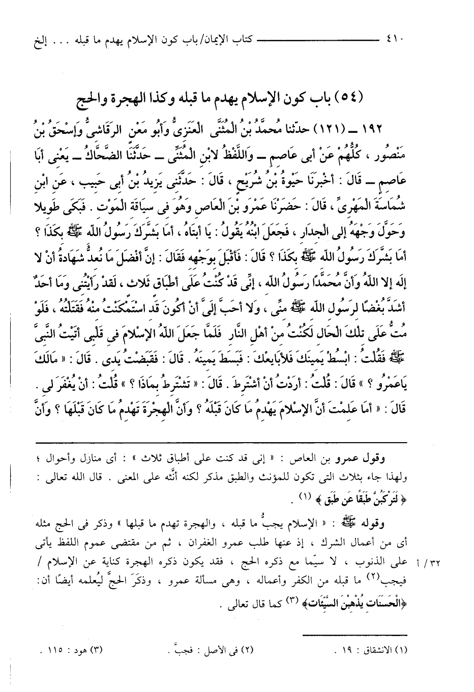 (54) باب كون الإسلام يهدم ما قبله وكذا الهجرة والحج