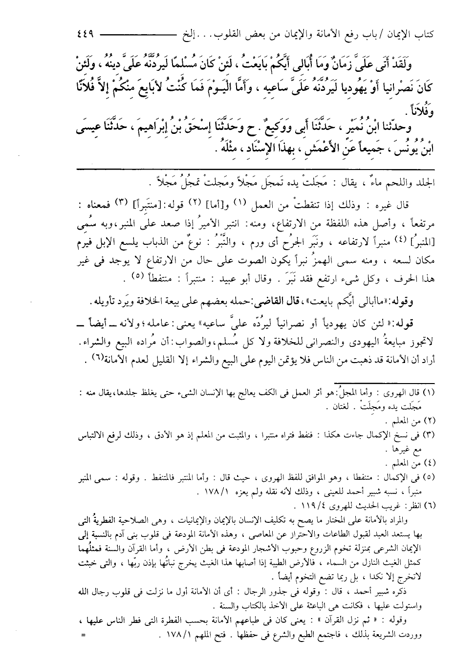 (¬5) فى الإكمال: متنفطاً، وهو الموافق للفظ الهروى، حيث قال: وأما المنتبر فالمتنفط. وقوله: سمى المنبر منبراً، نسبه شبير أحمد للعينى، وذلك لأنه نقله ولم يعزه 1/ 178.