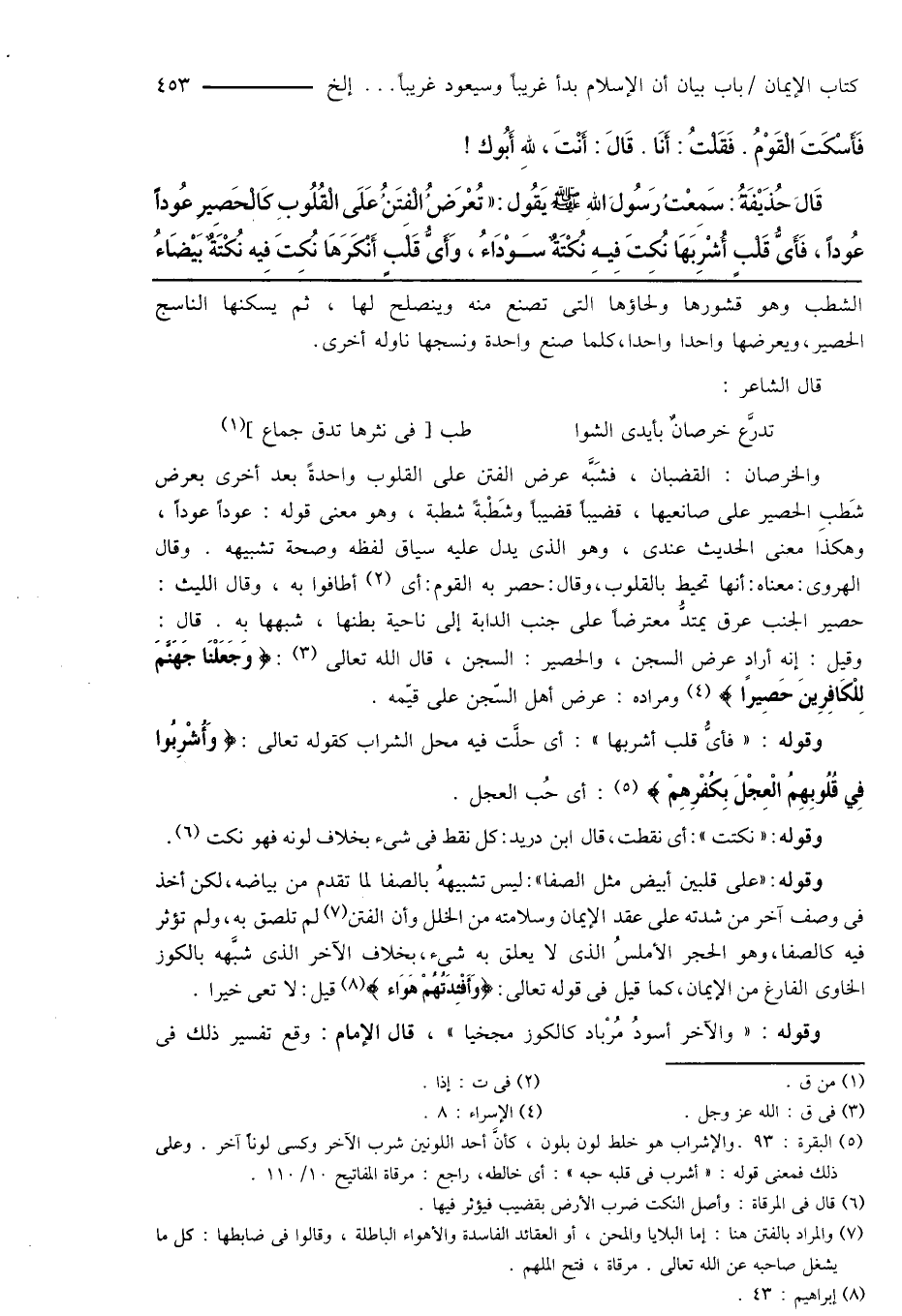 وقوله: " فأىُّ قلب أشربها ": أى حلَّت فيه محل الشراب كقوله تعالى: {وَأُشْرِبُوا فِي قُلُوبِهِمُ الْعِجْلَ بِكُفْرِهِمْ} (¬5): أى حُب العجل.